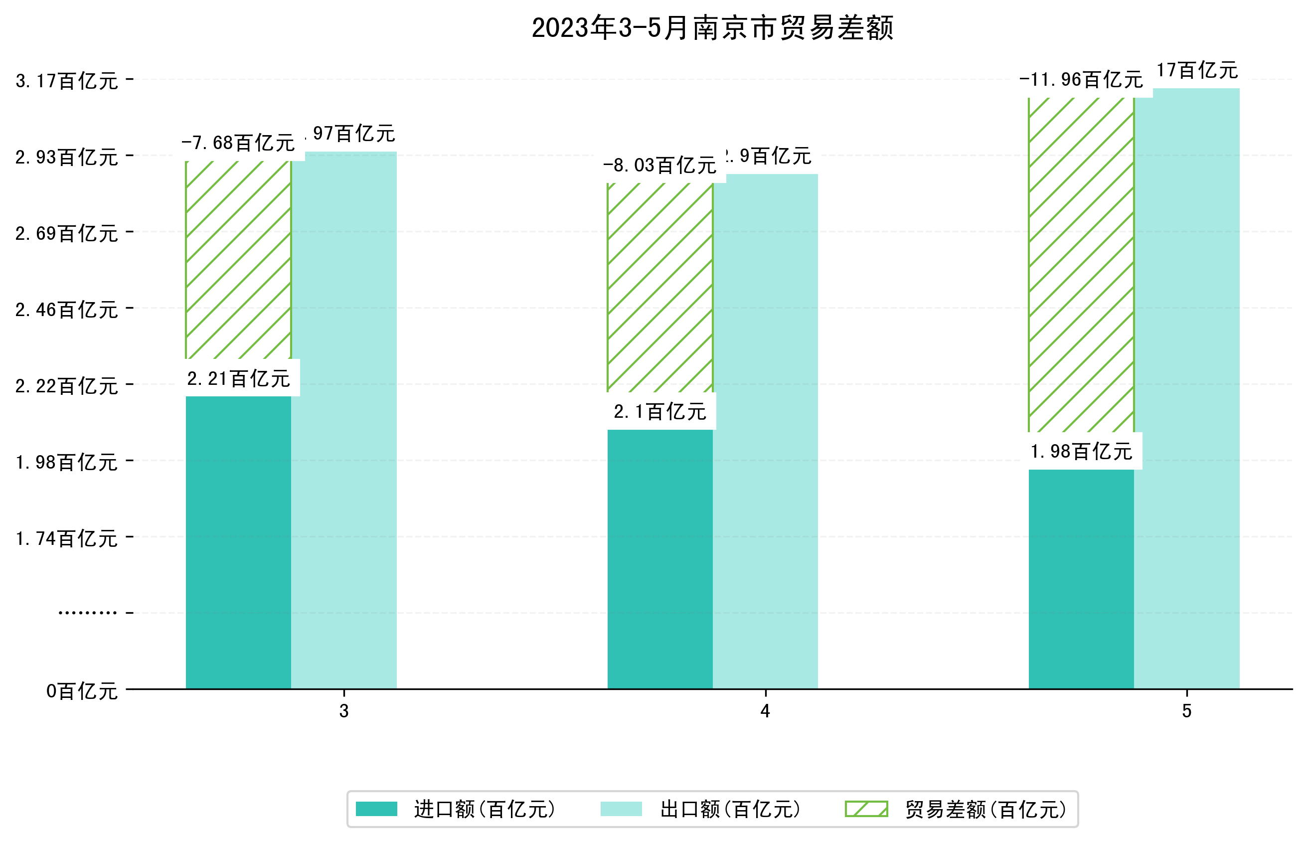 一、2023年5月南京市单月出口总额及进出口差额统计分析