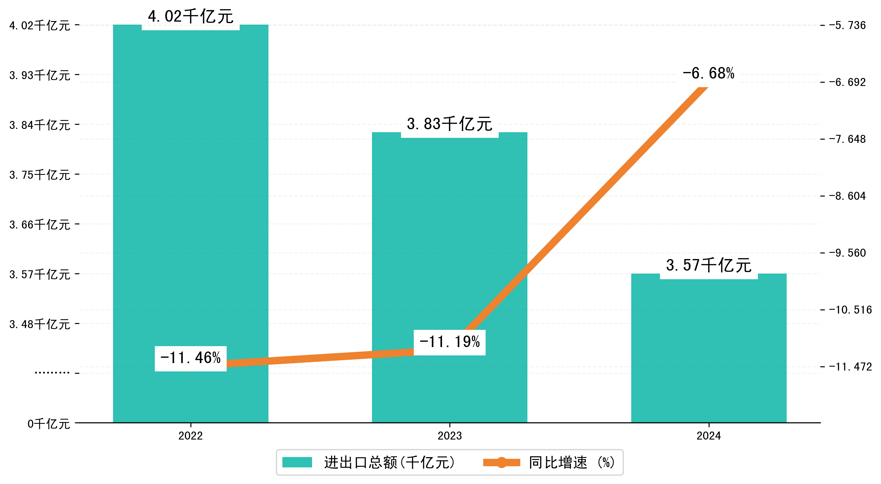 以人民币计,2024年1-8月南京市进出口总额为3573,5989.6946万元,相比上年同期减少了255,6613.9187万元,同比减少了-6.30%。