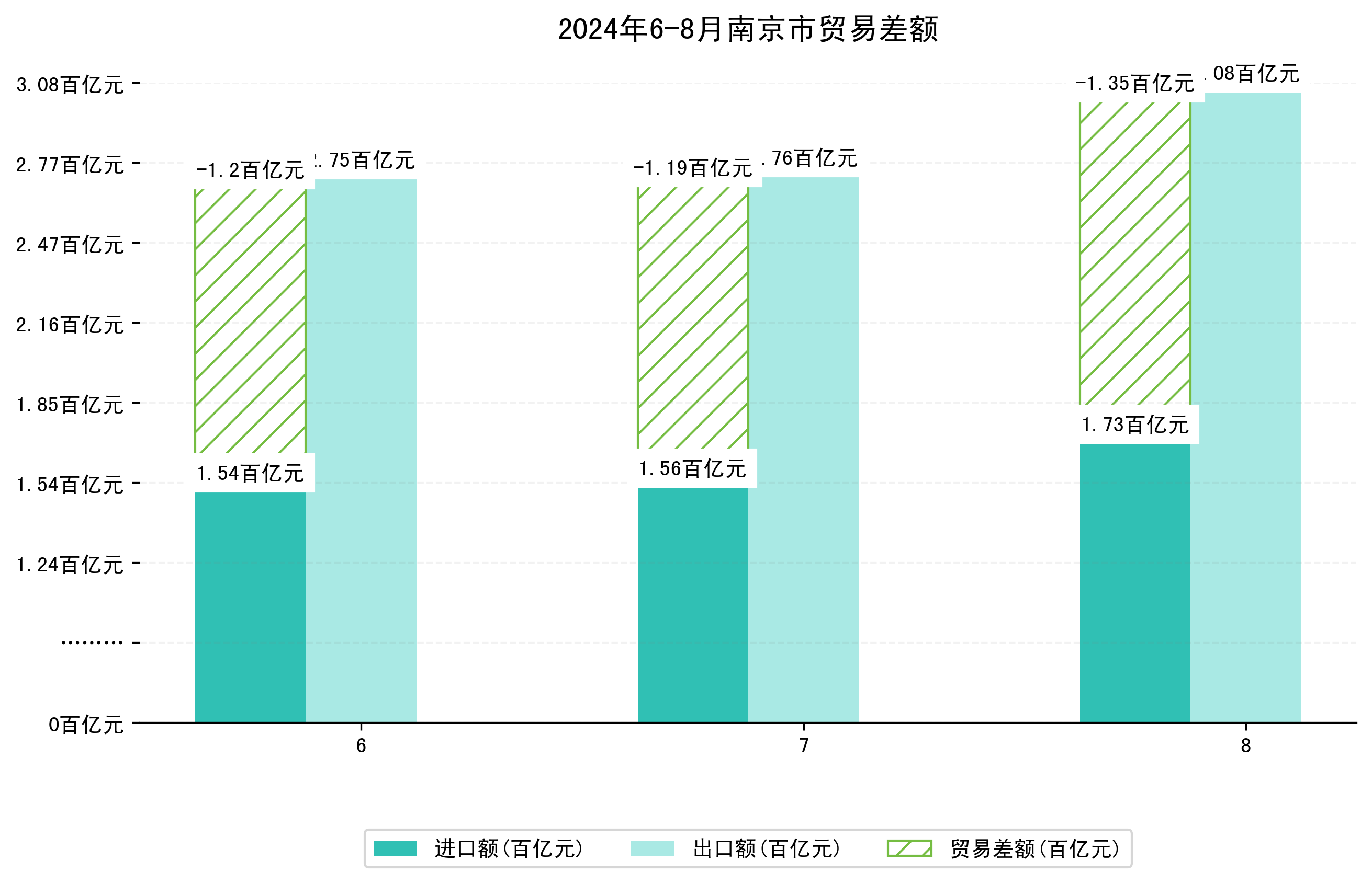 一、2024年8月南京市单月出口总额及进出口差额统计分析