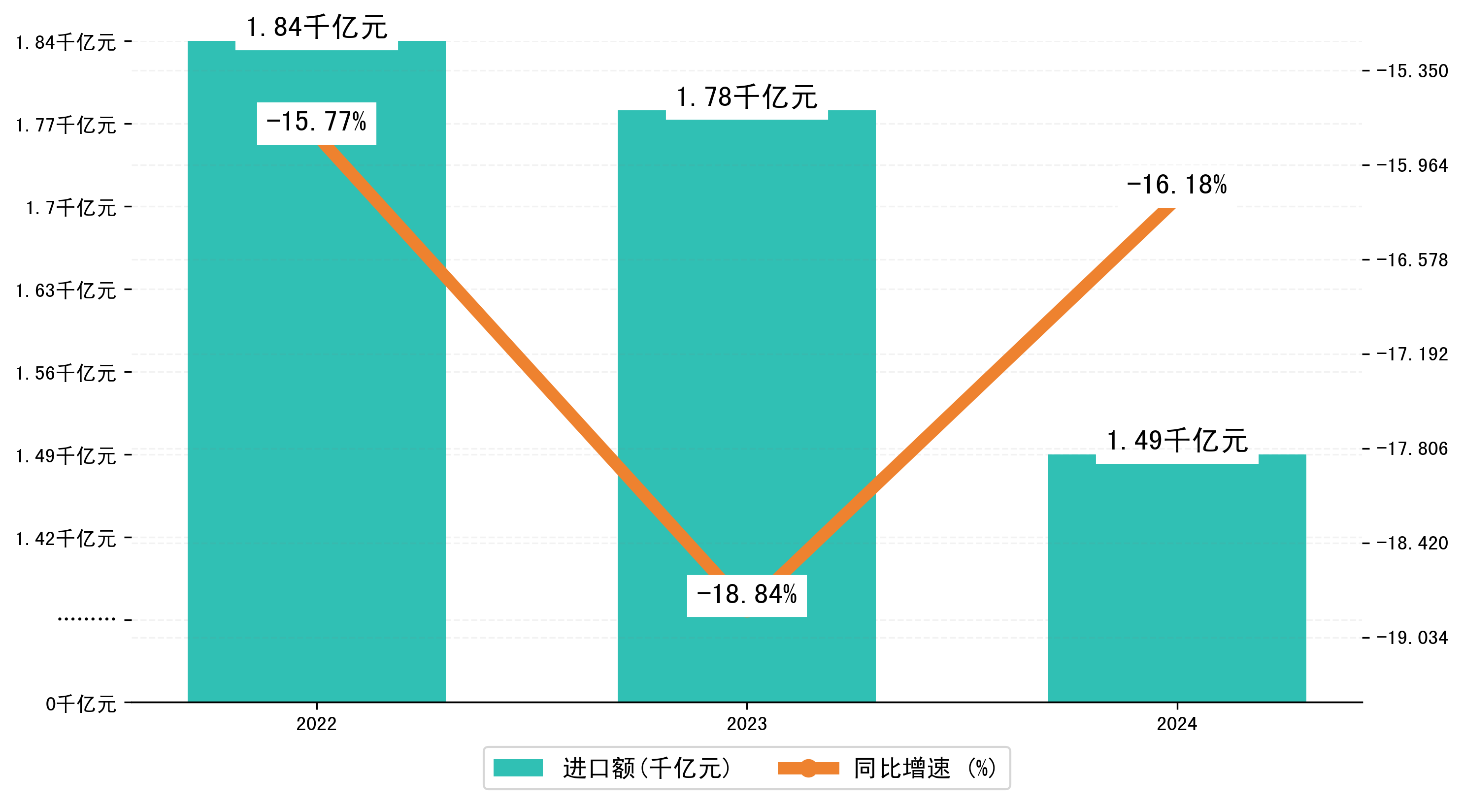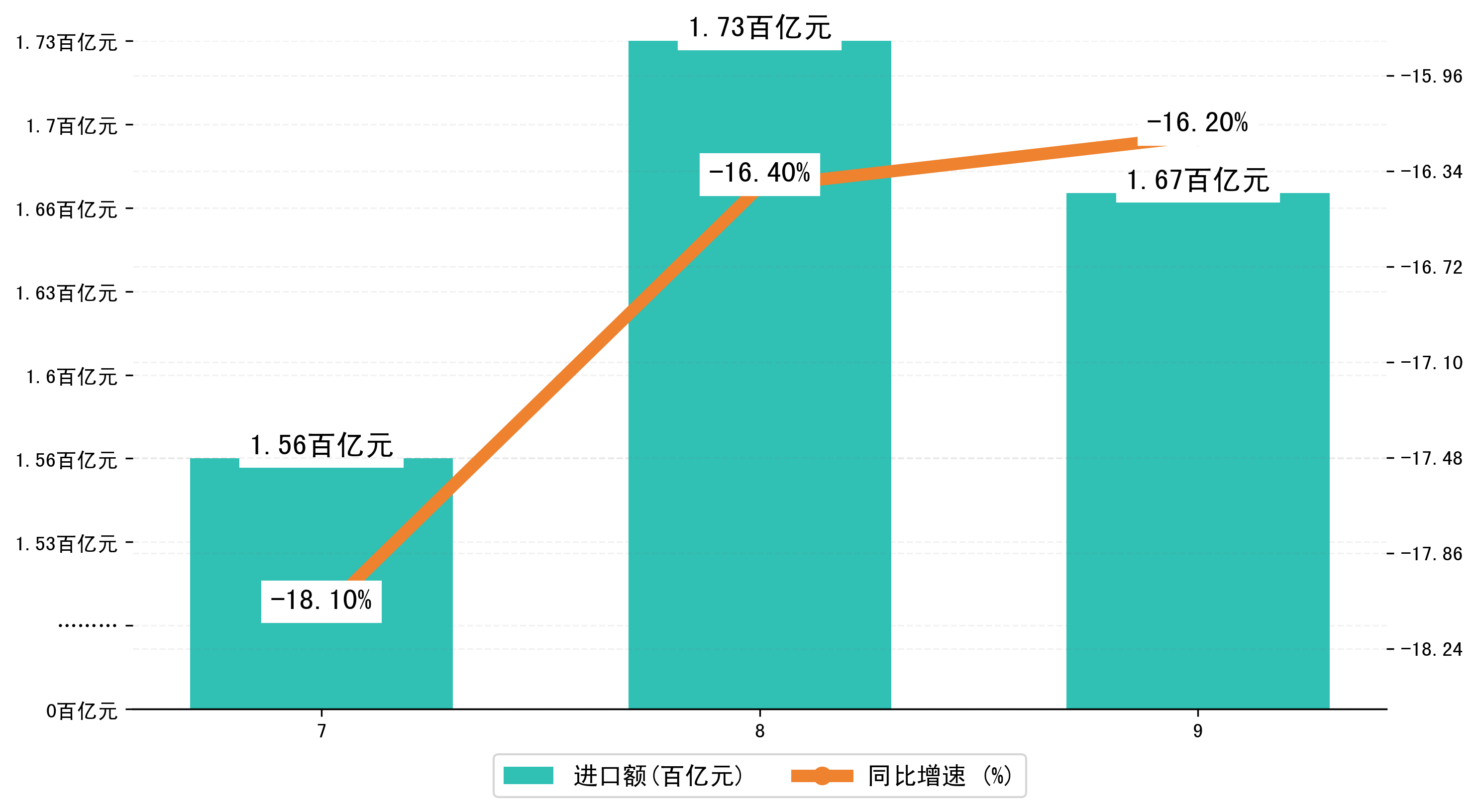 以人民币计,2024年1-9月南京市进口额为1491,6477.4158万元,相比上年同期减少了287,8654.289万元,同比减少了-16.20%。