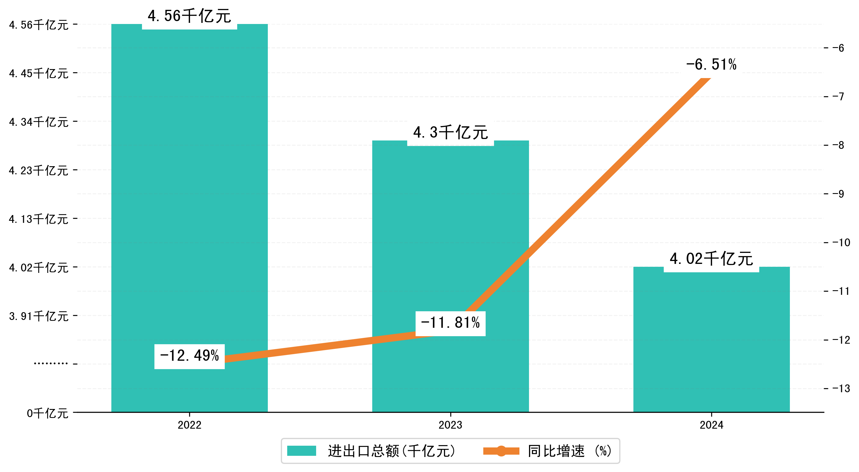 以人民币计,2024年1-9月南京市进出口总额为4017,7904.4403万元,相比上年同期减少了279,9231.5708万元,同比减少了-6.20%。