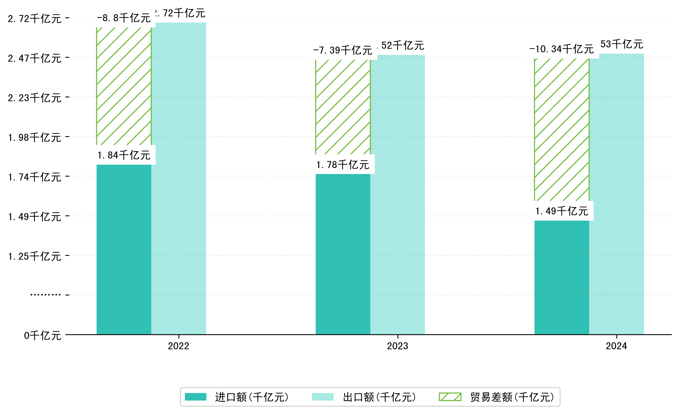 以人民币计,2024年1-9月南京市贸易差额为1034,4949,6088万元(贸易顺差),相比上年同期增加了295,8077,0073万元,同比增加40.05%。