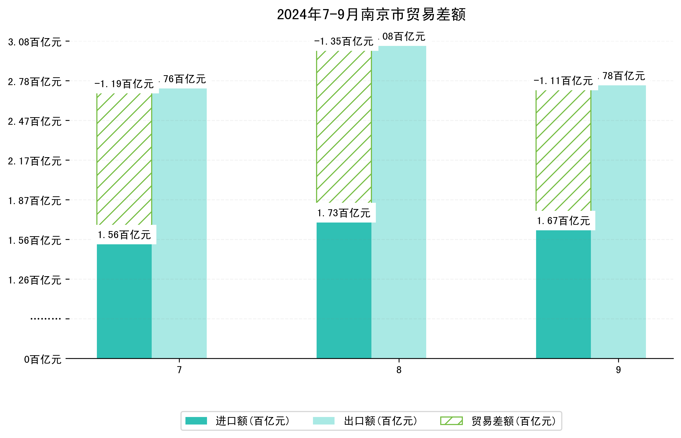 一、2024年9月南京市单月出口总额及进出口差额统计分析