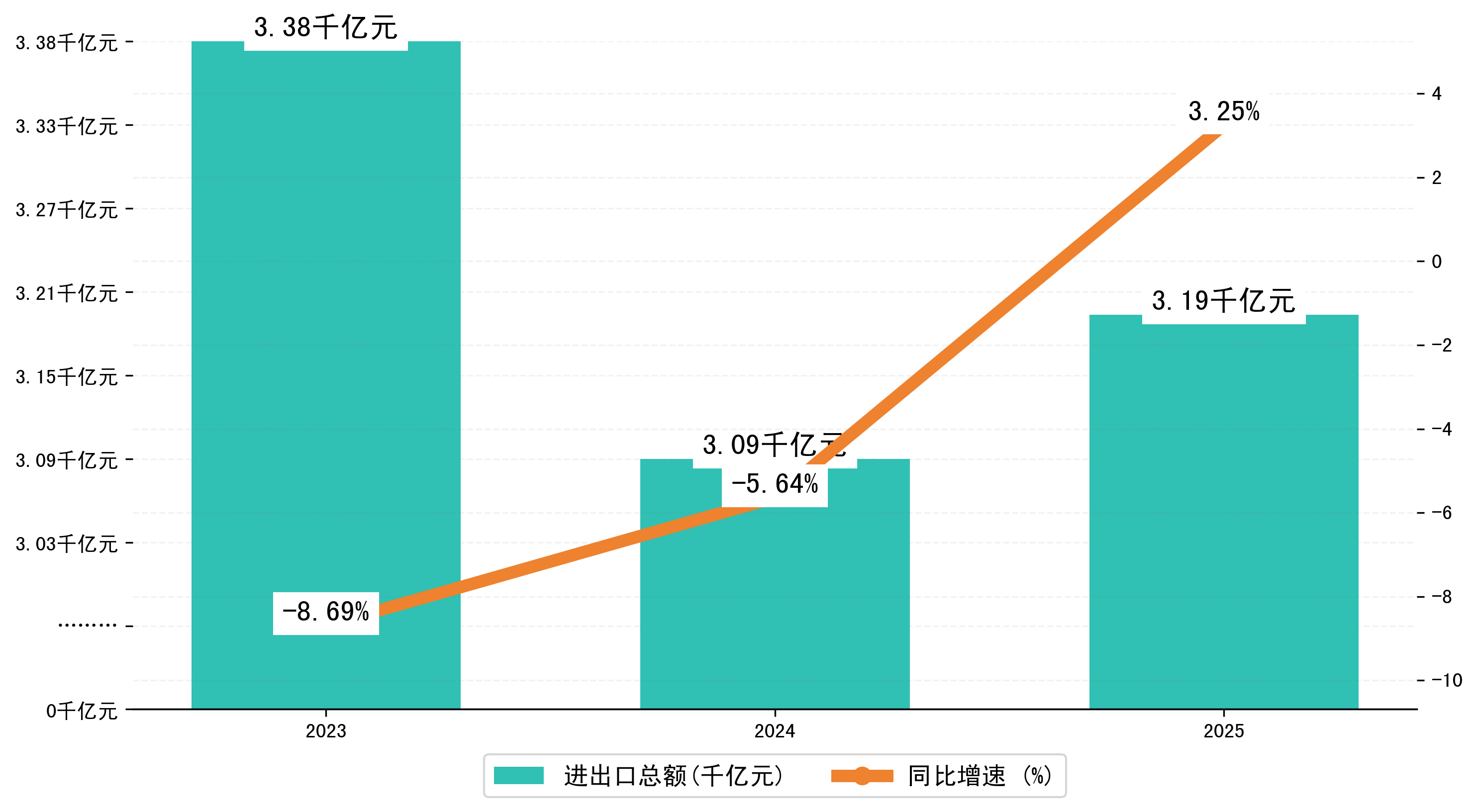 以人民币计,2025年1-7月南京市进出口总额为3193,5585.5663万元,相比上年同期增加了100,6079.222万元,同比增加了3.20%。