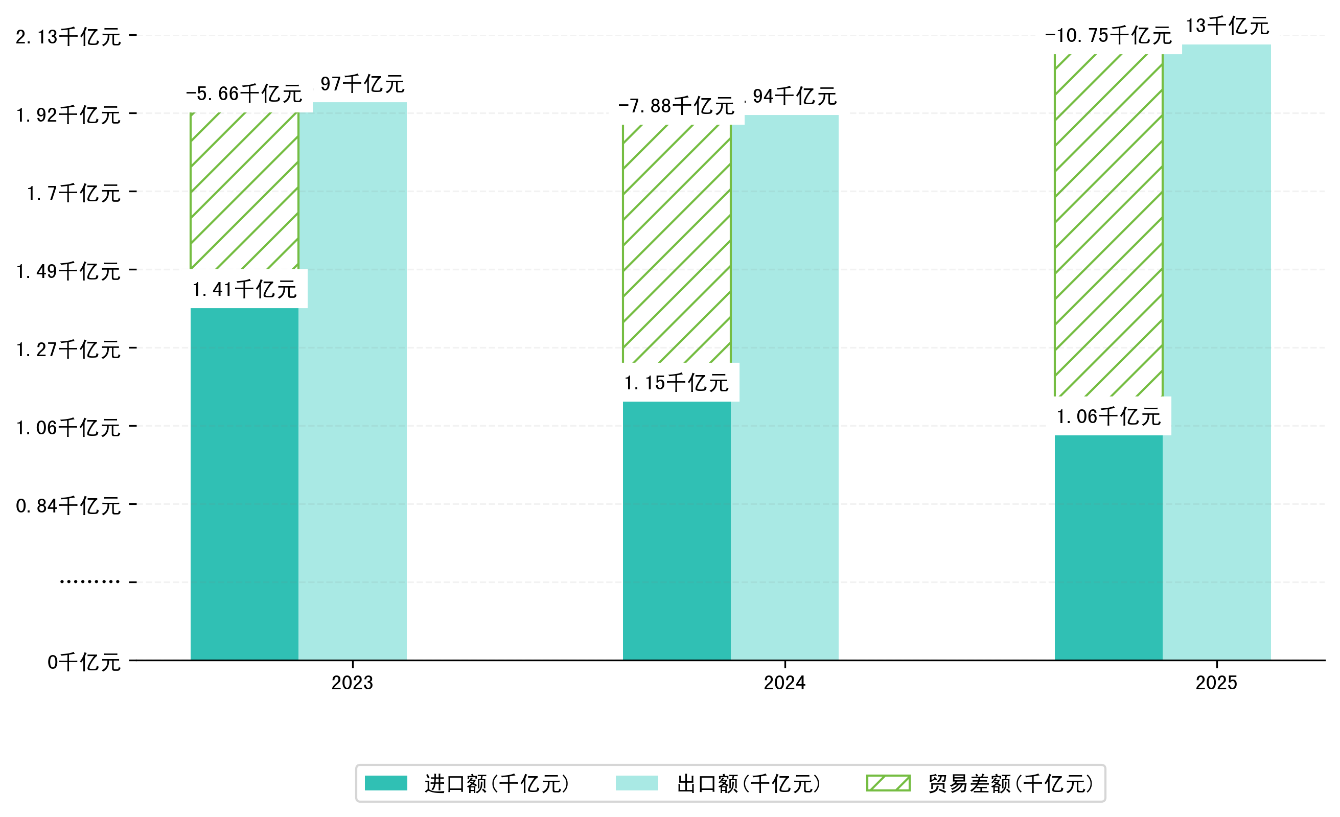以人民币计,2025年1-7月南京市贸易差额为1074,9189,8205万元(贸易顺差),相比上年同期增加了287,1784,3364万元,同比增加36.46%。