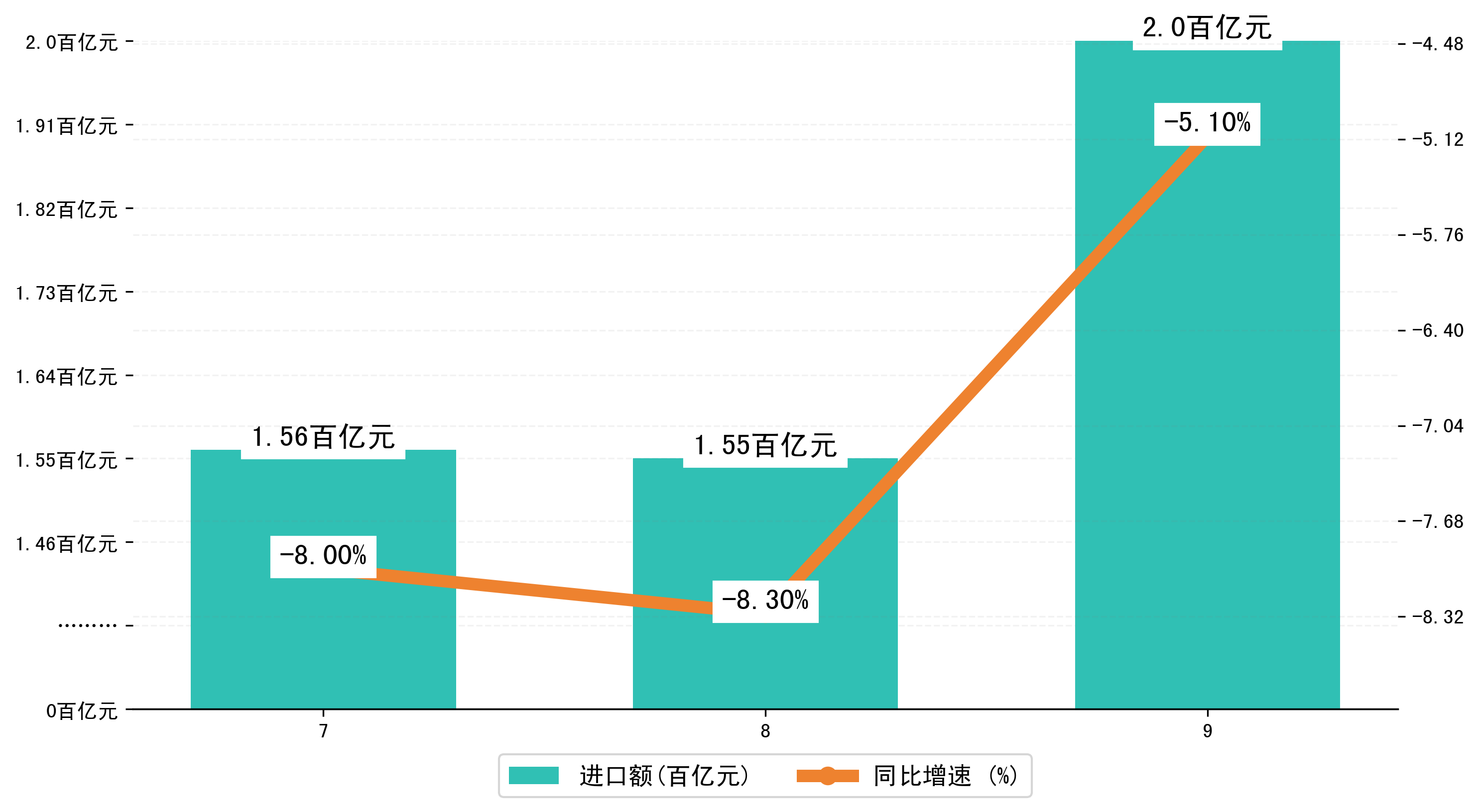 以美元计,2025年1-9月南京市进口额为197,2307.1206万美元,相比上年同期减少了12,5317.7876万美元,同比减少-5.90%。