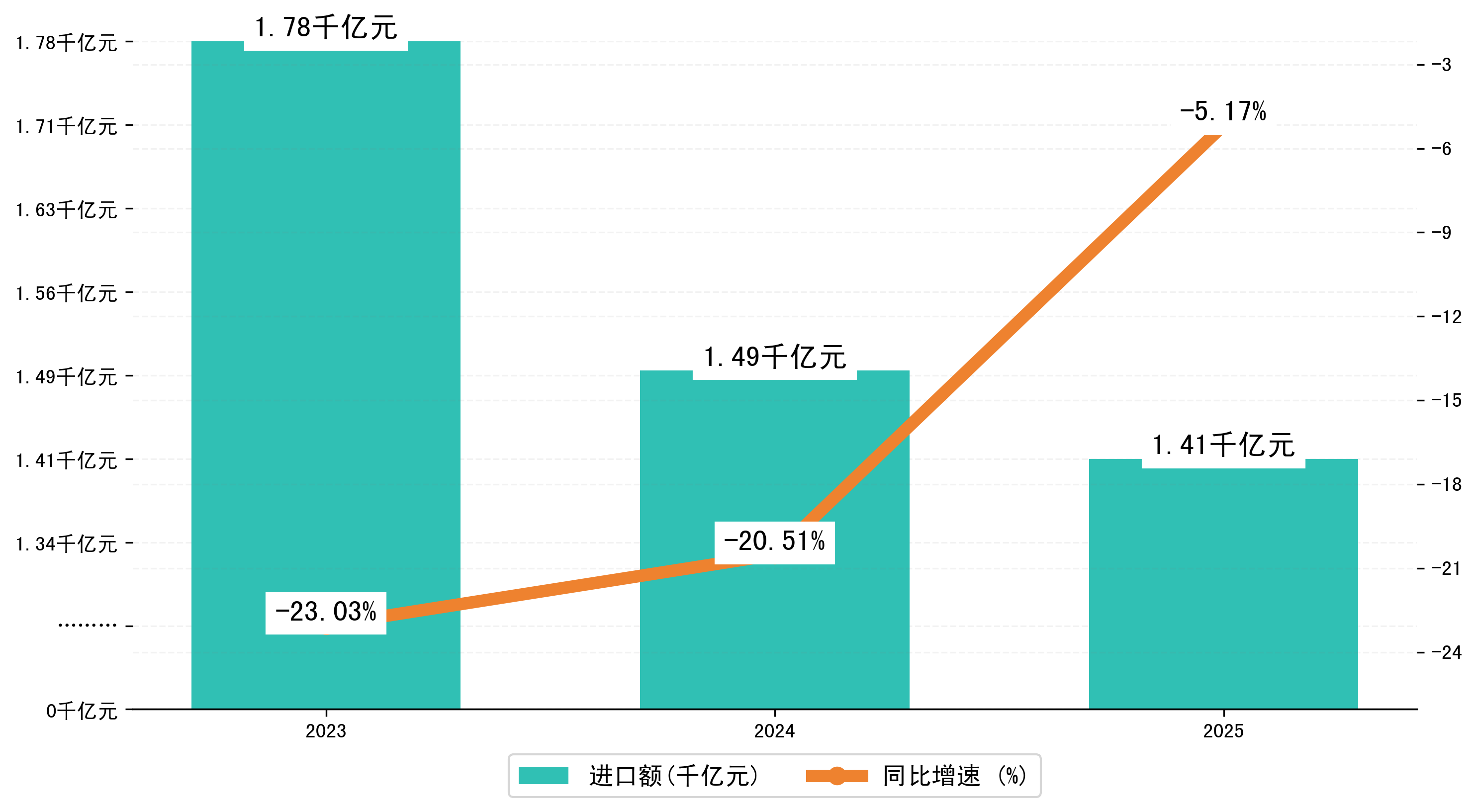 以人民币计,2025年1-9月南京市进口额为1414,5786.421万元,相比上年同期减少了77,0690.9948万元,同比减少了-5.10%。