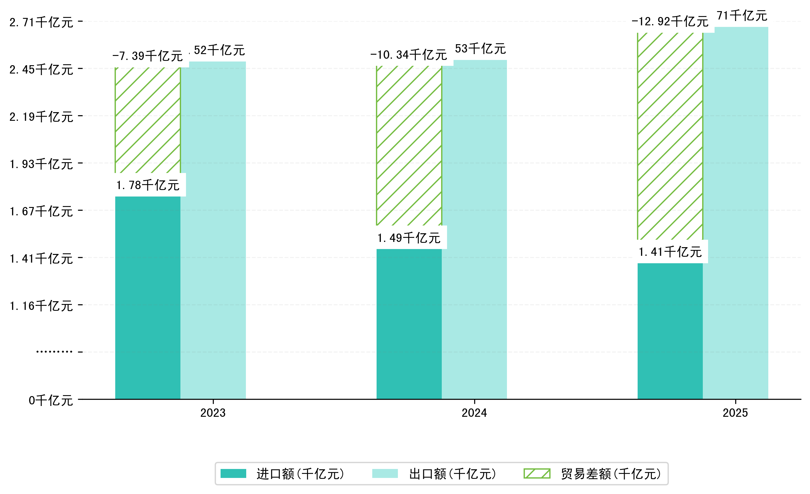 以人民币计,2025年1-9月南京市贸易差额为1292,4301,2438万元(贸易顺差),相比上年同期增加了257,9351,6350万元,同比增加24.93%。