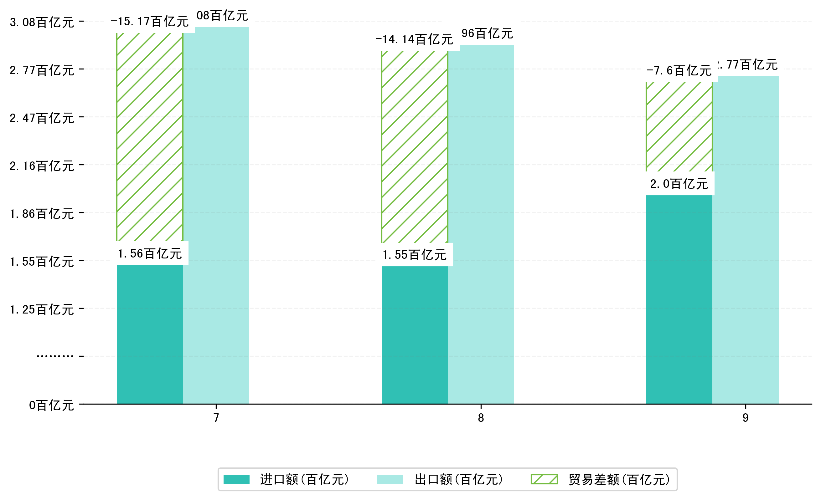 一、2025年9月南京市单月出口总额及进出口差额统计分析