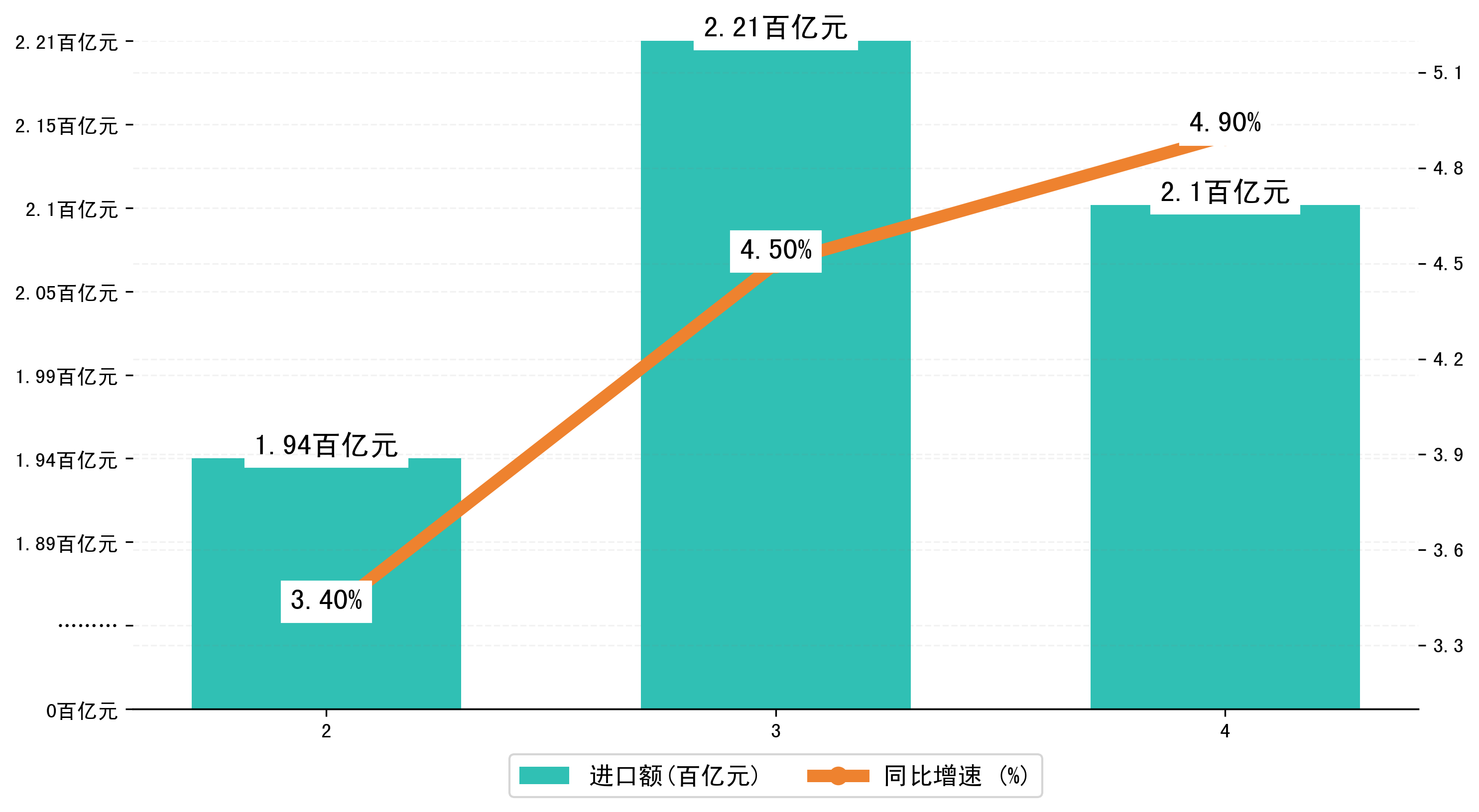 以人民币计,2023年4月南京市进口额为210,2146.0532万元,相比上月减少了10,4286.152万元;相比上年同期增加了12,0921.0883万元,同比增加了4.90%。