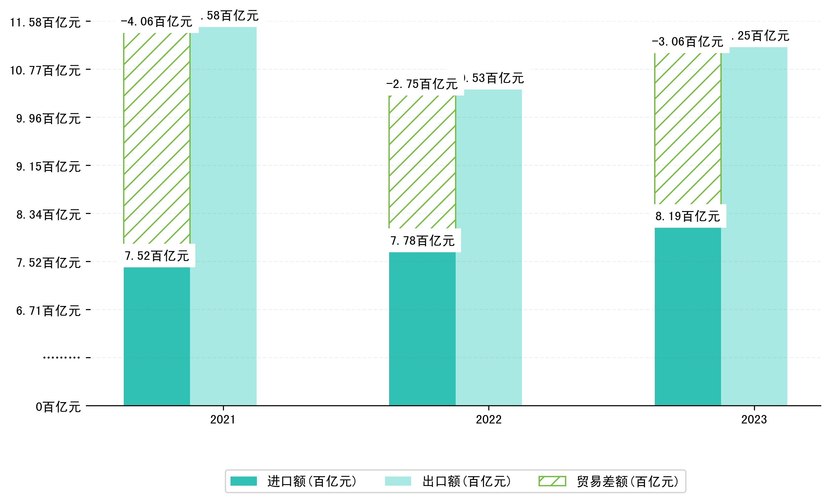 以人民币计,2023年1-4月南京市贸易差额为305,5541,9336万元(贸易顺差),相比上年同期增加了30,7196,0978万元,同比增加11.18%。