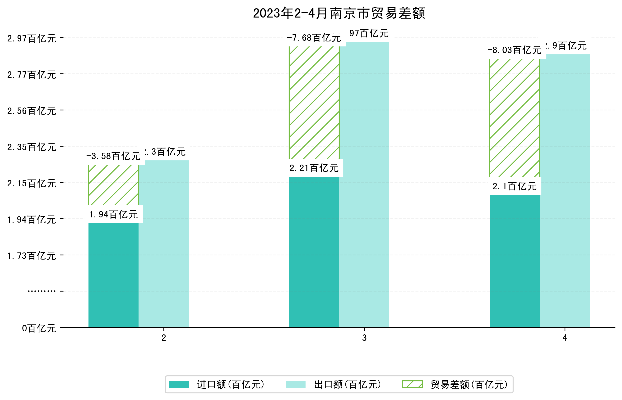 一、2023年4月南京市单月出口总额及进出口差额统计分析