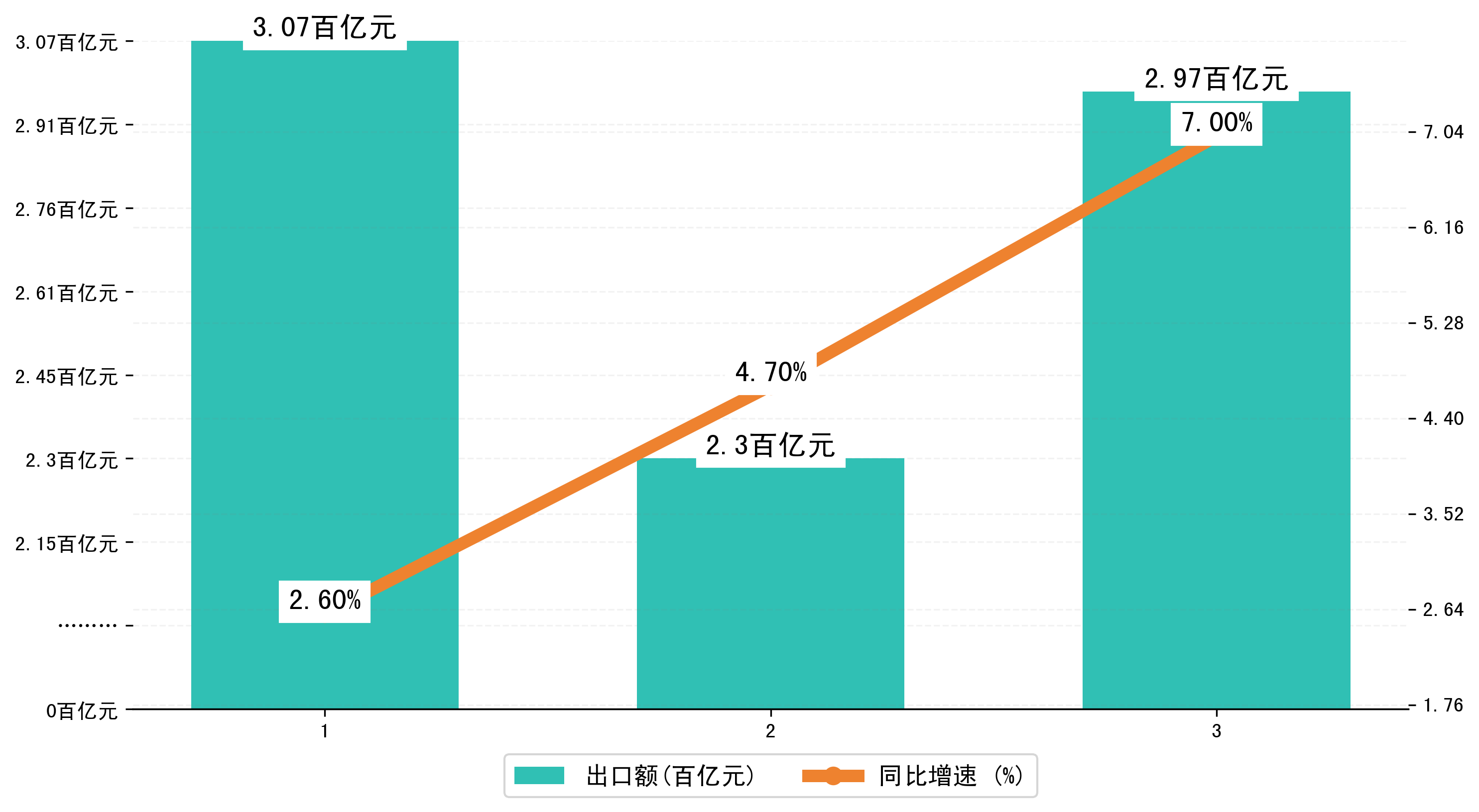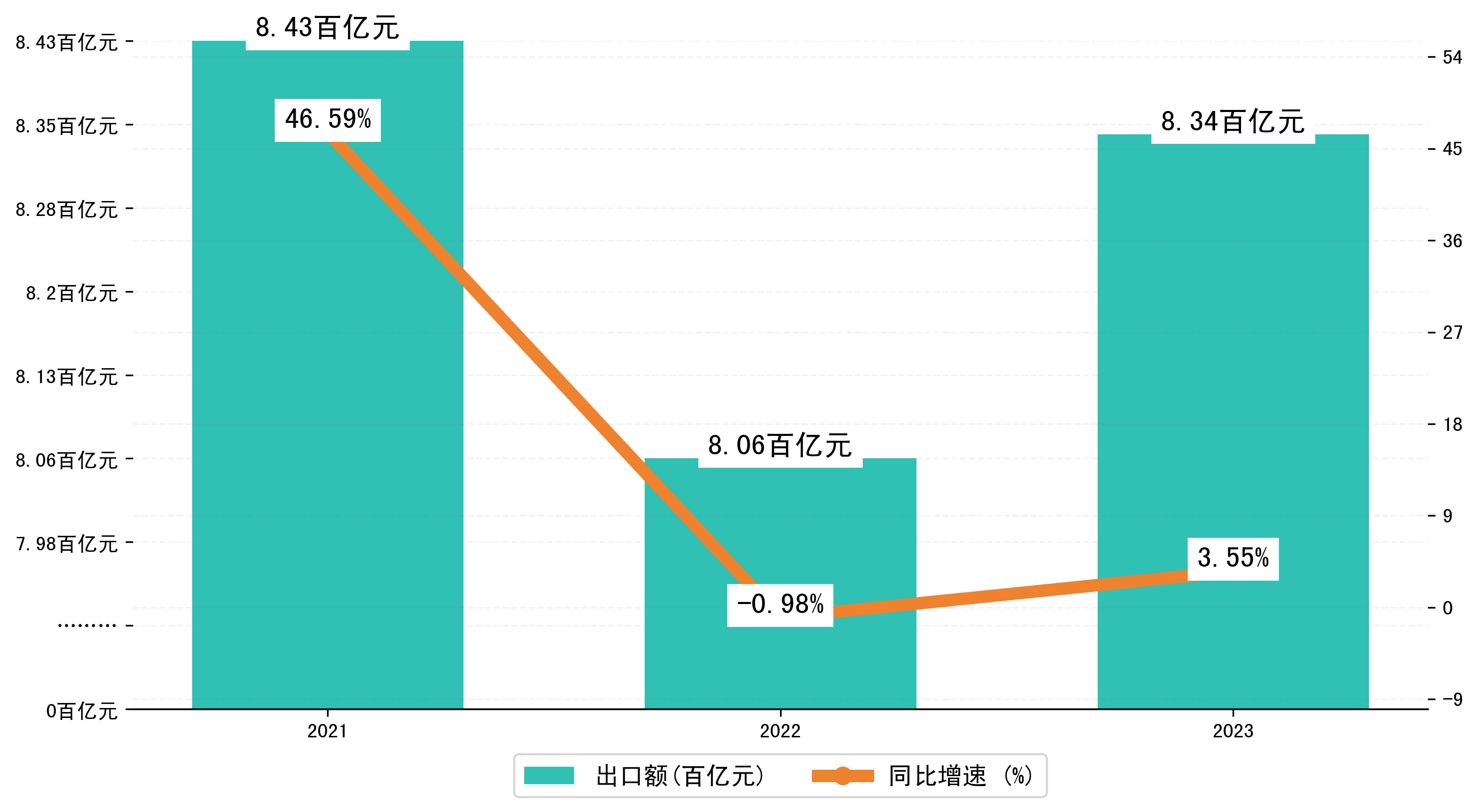以人民币计,2023年1-3月南京市出口额为834,2767.0927万元,相比上年同期增加了28,5828.8401万元,同比增加了7.00%。