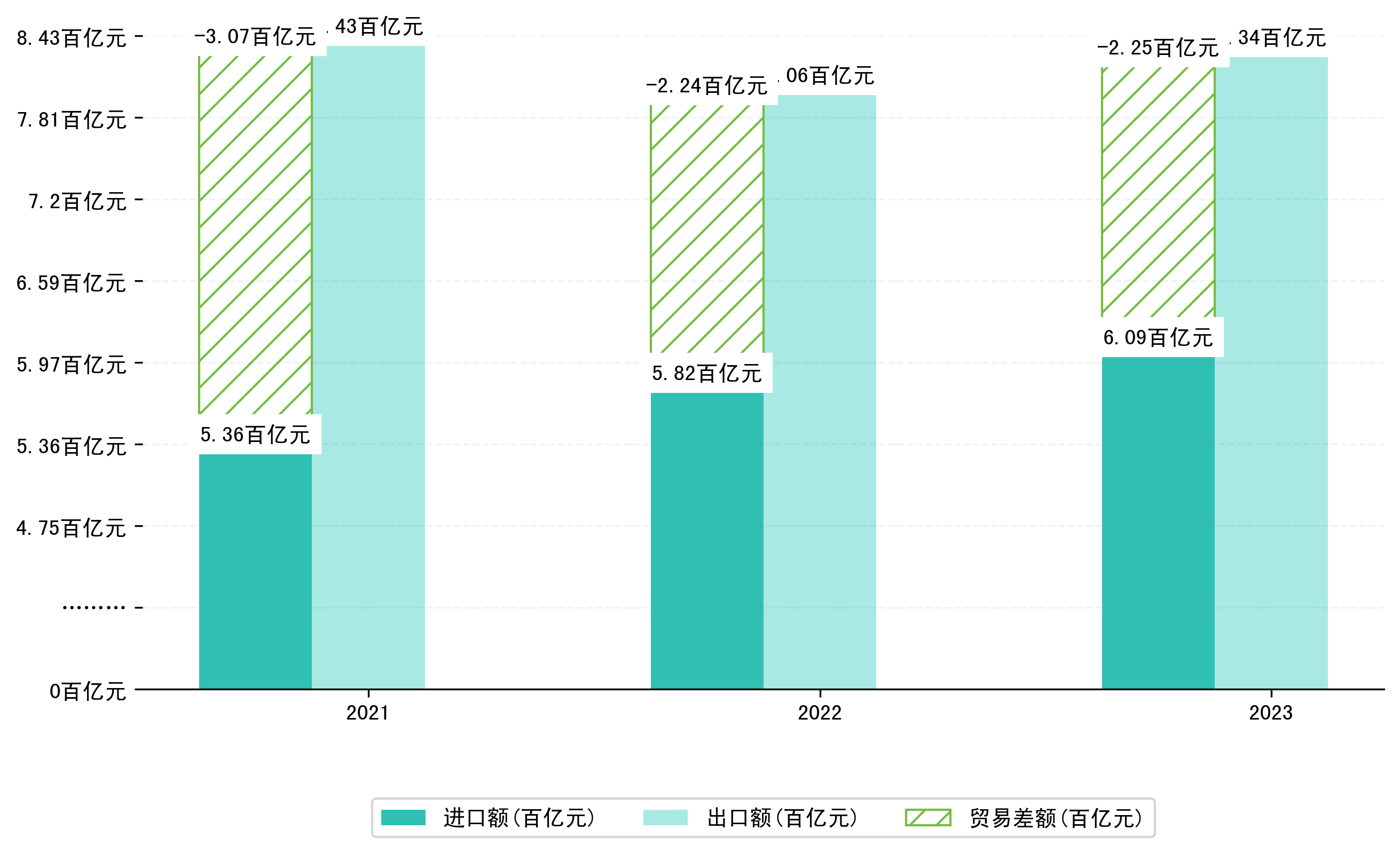 以人民币计,2023年1-3月南京市贸易差额为225,3720,6854万元(贸易顺差),相比上年同期增加了1,7389,8982万元,同比增加0.78%。