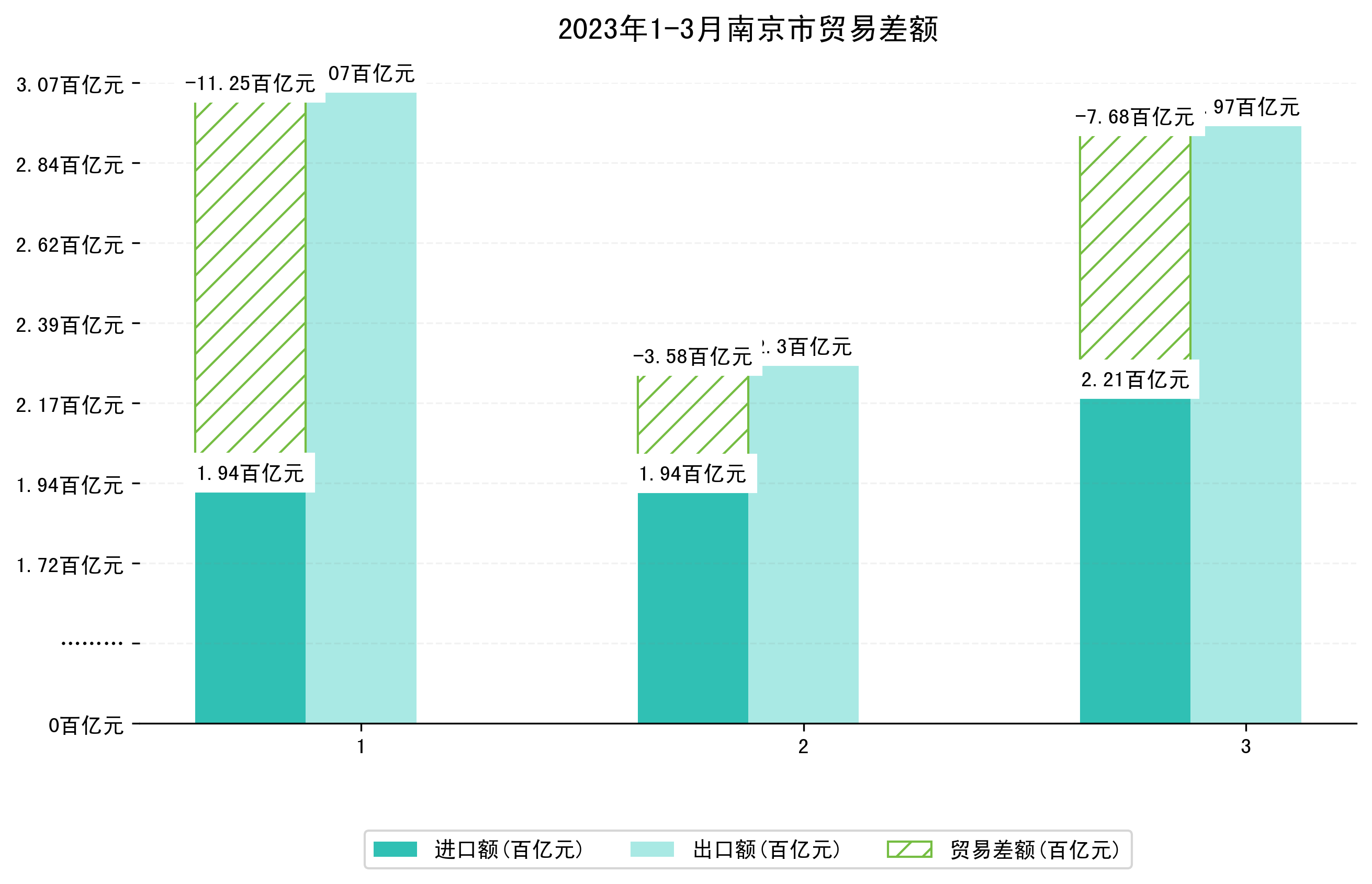 一、2023年3月南京市单月出口总额及进出口差额统计分析