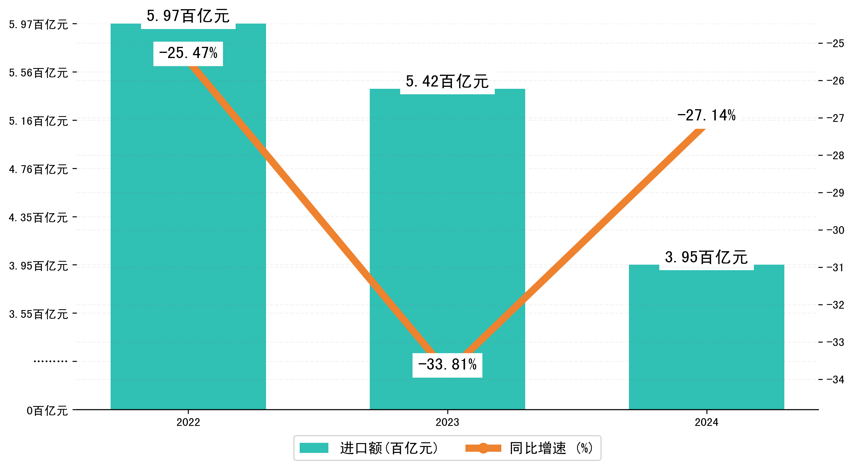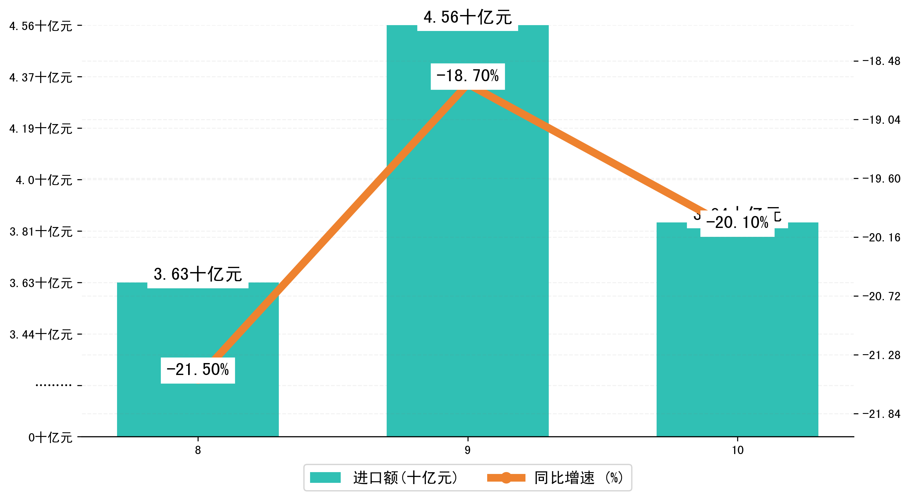 以人民币计,2024年1-10月南宁市进口额为394,9499.0283万元,相比上年同期减少了147,1241.3299万元,同比减少了-20.10%。