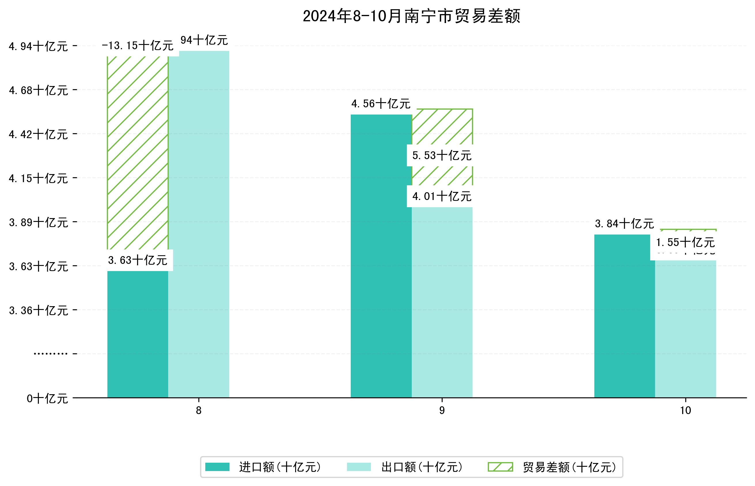 2024年10月南宁市进出口总额及进出口差额统计分析