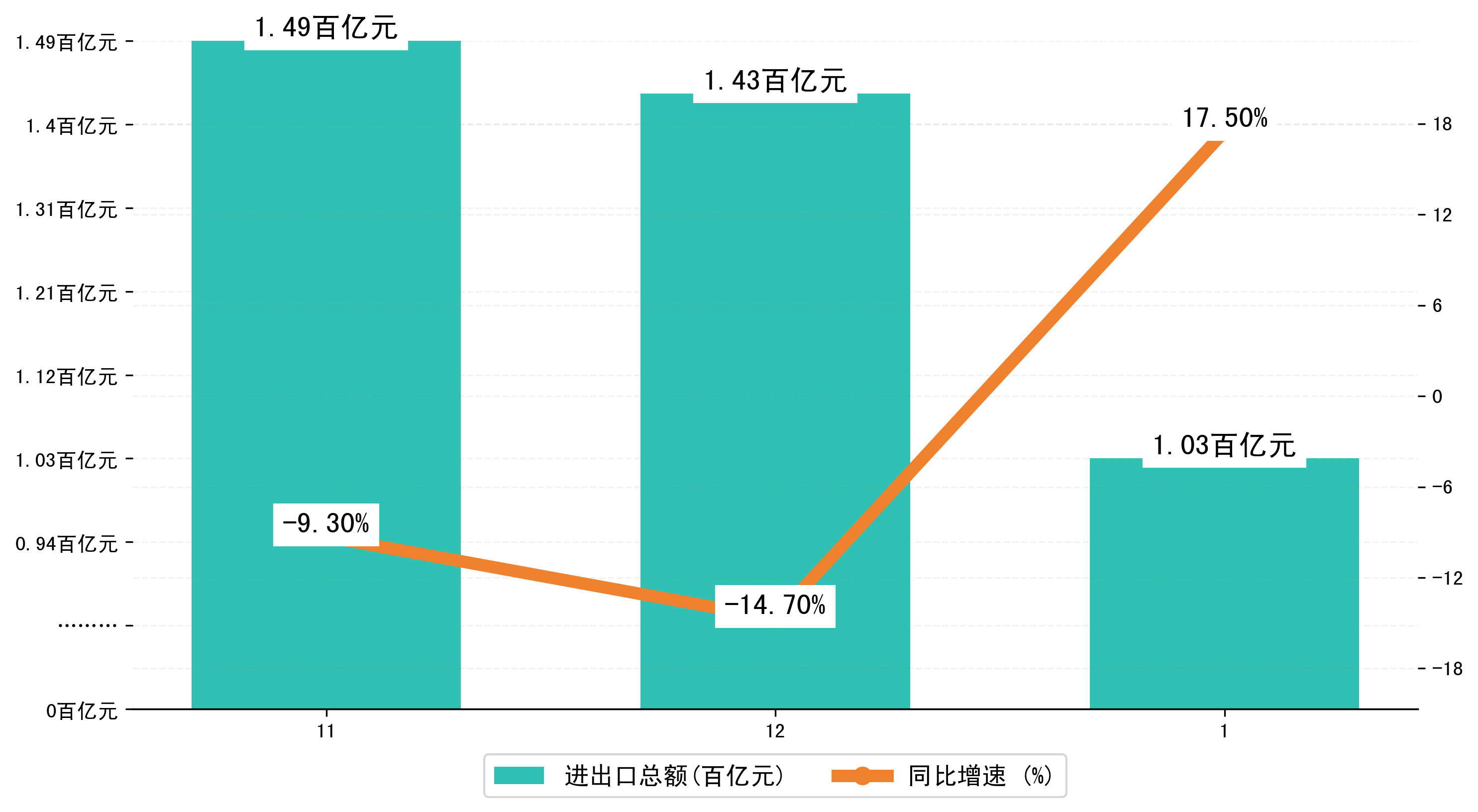 (图一:2024年11-1月南宁市进出口总额)