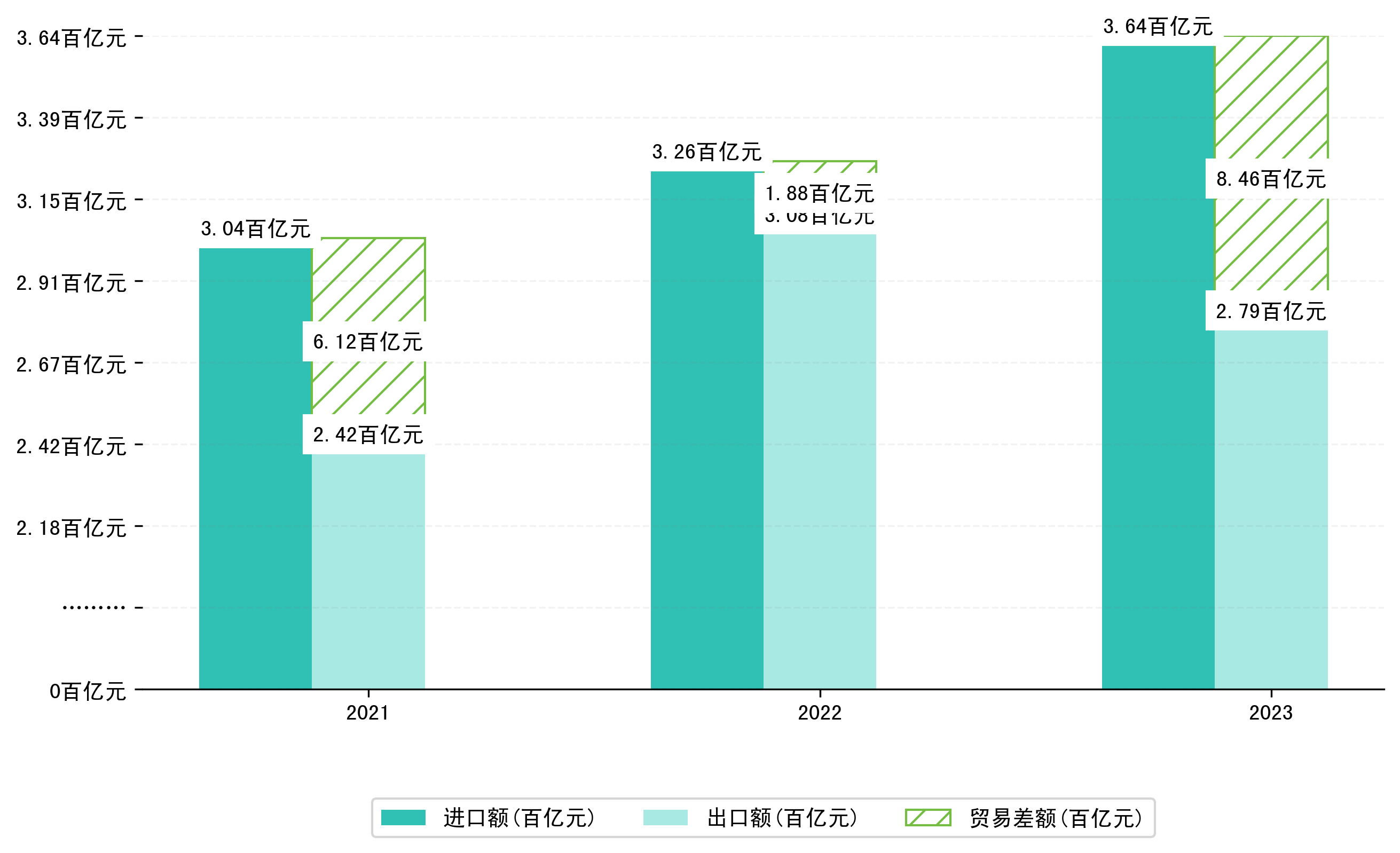 以美元计,2023年1-6月南宁市贸易差额为12,2593,3162万美元(贸易逆差),相比上年同期减少了9,3189,3302万美元,同比减少316.93%。