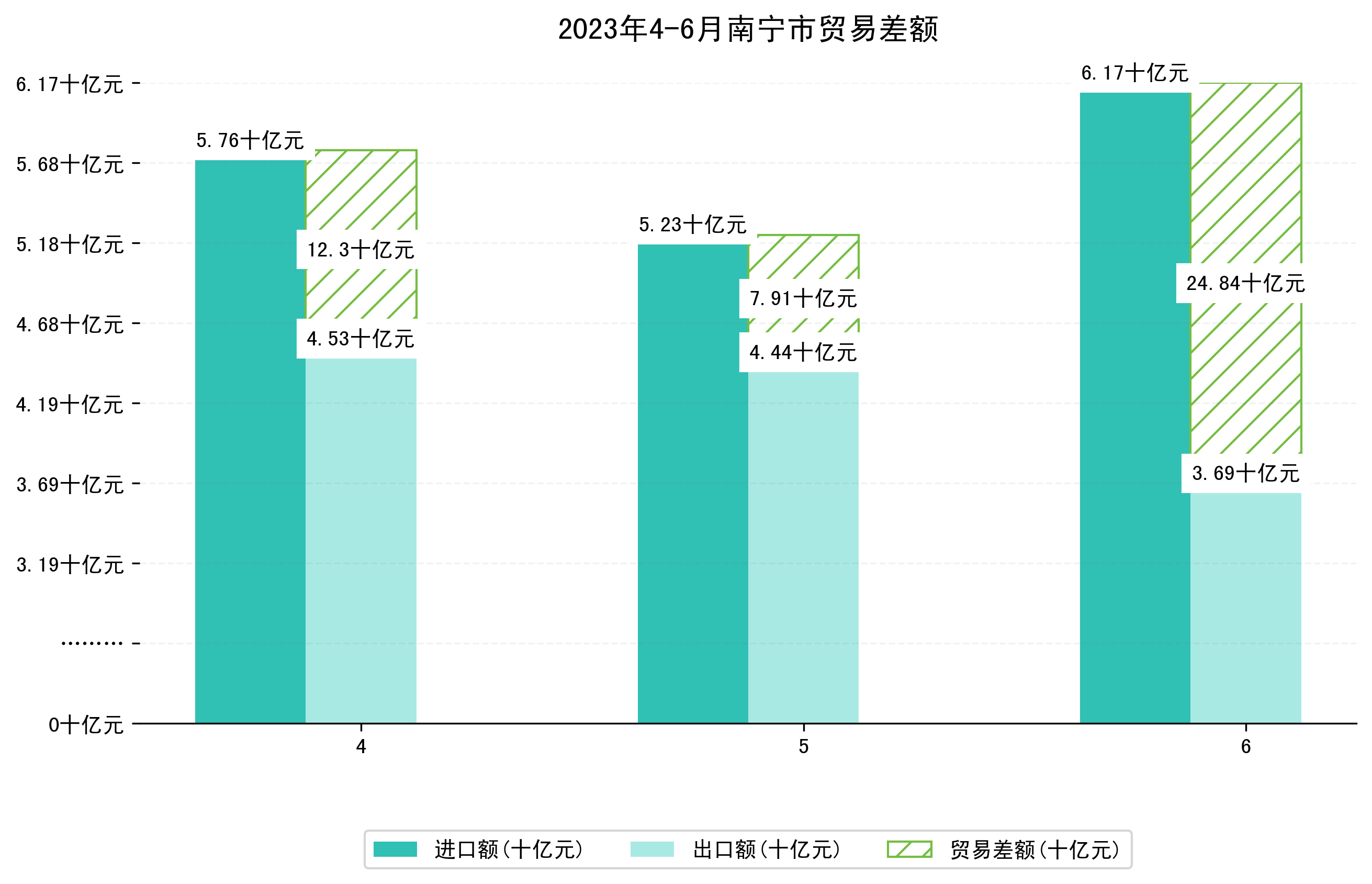 2023年6月南宁市进出口总额及进出口差额统计分析