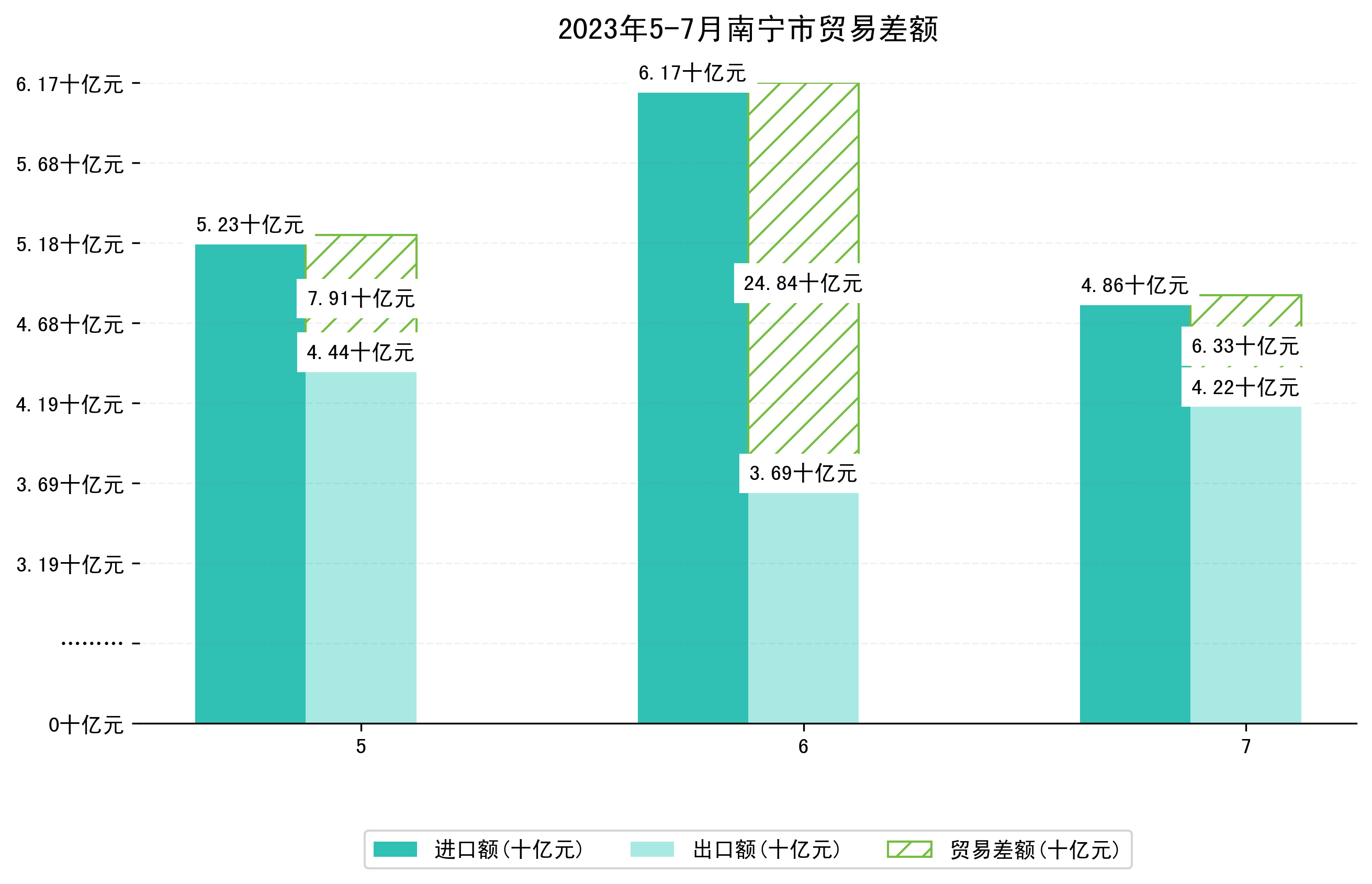 2023年7月南宁市进出口总额及进出口差额统计分析