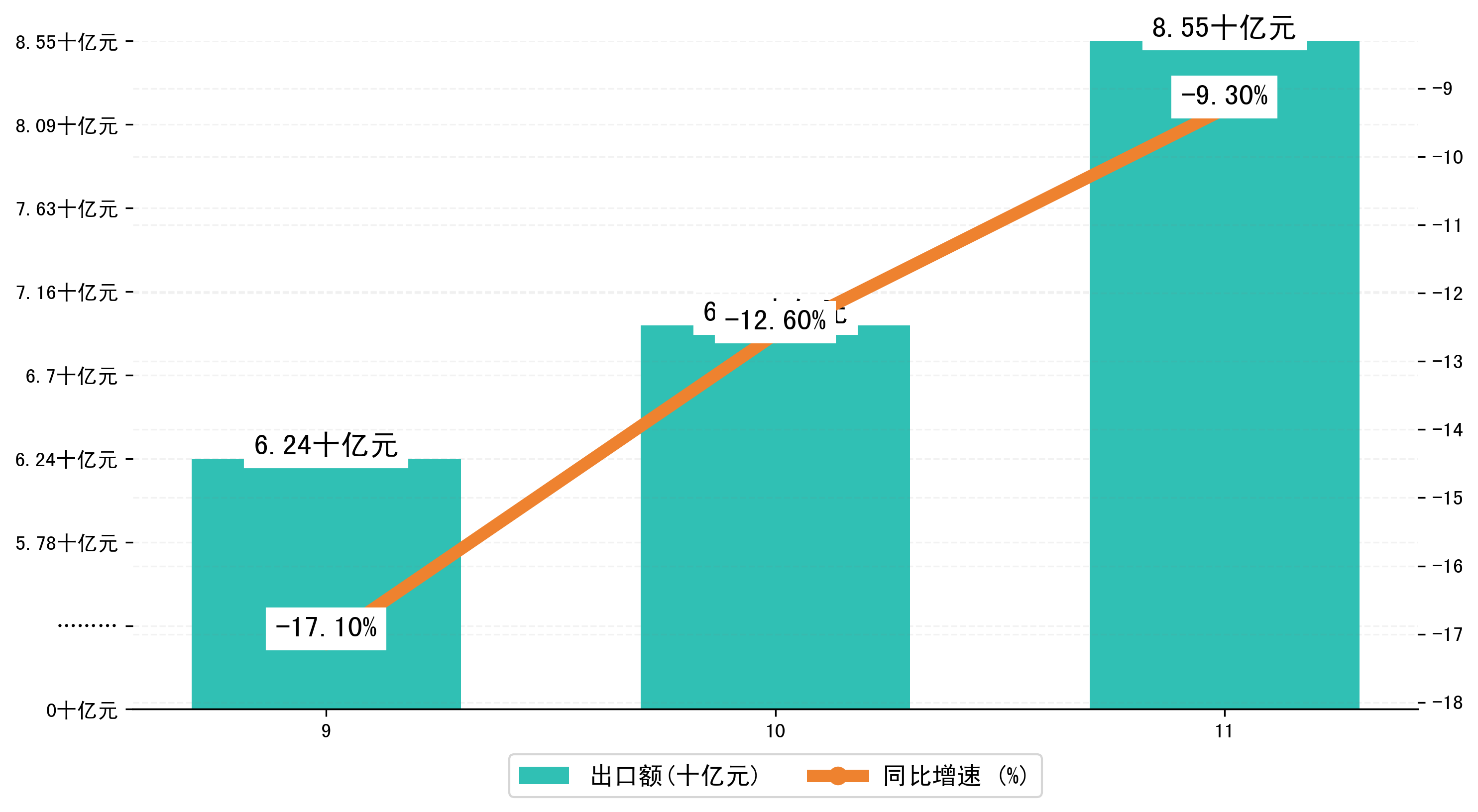 (图二:2023年9-11月南宁市出口额)