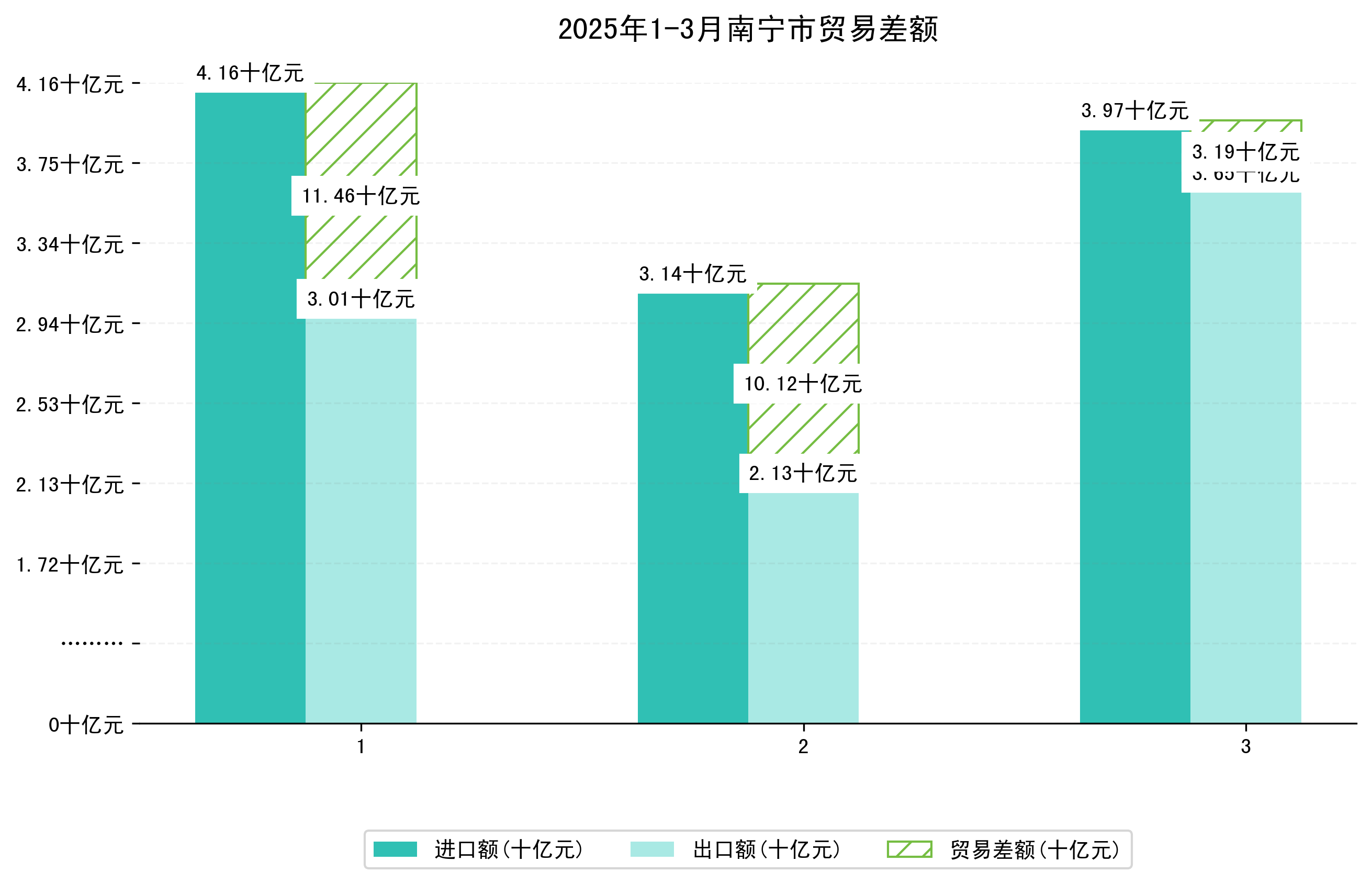 2025年3月南宁市进出口总额及进出口差额统计分析