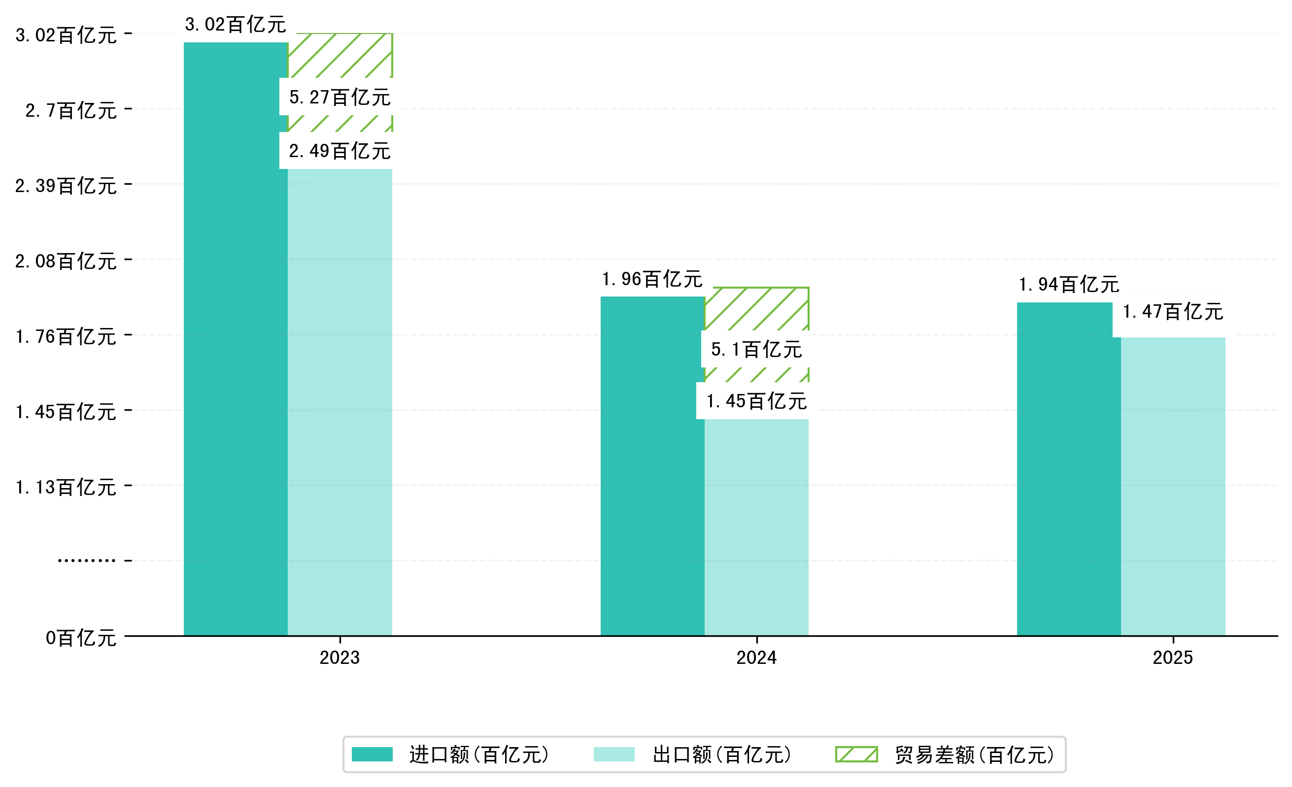 以美元计,2025年1-5月南宁市贸易差额为2,0305,0832万美元(贸易逆差),相比上年同期增加了5,1273,9607万美元,同比增加-71.63%。