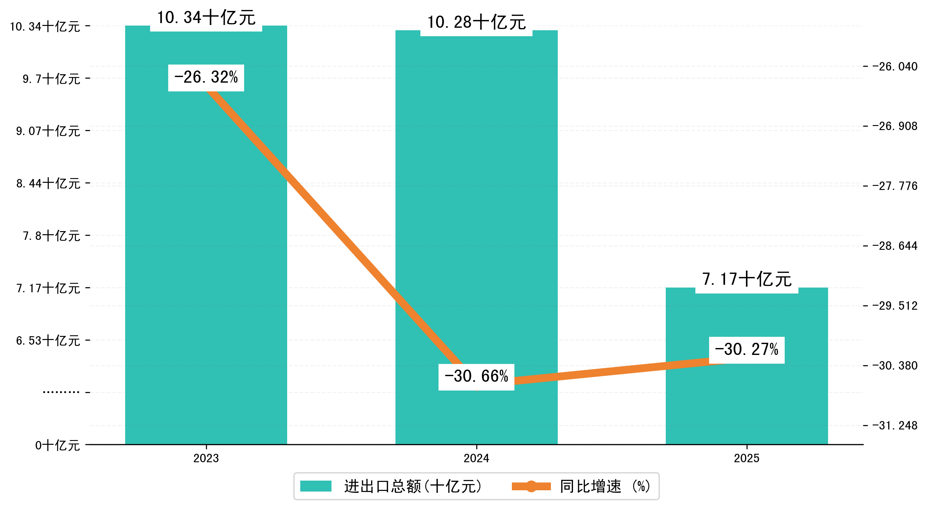 以美元计,2025年1月南宁市进出口总额为9,9683.2605万美元,相比上月减少了5,0137.6283万美元;相比上年同期减少了4,4852.1764万美元,同比减少-22.80%。