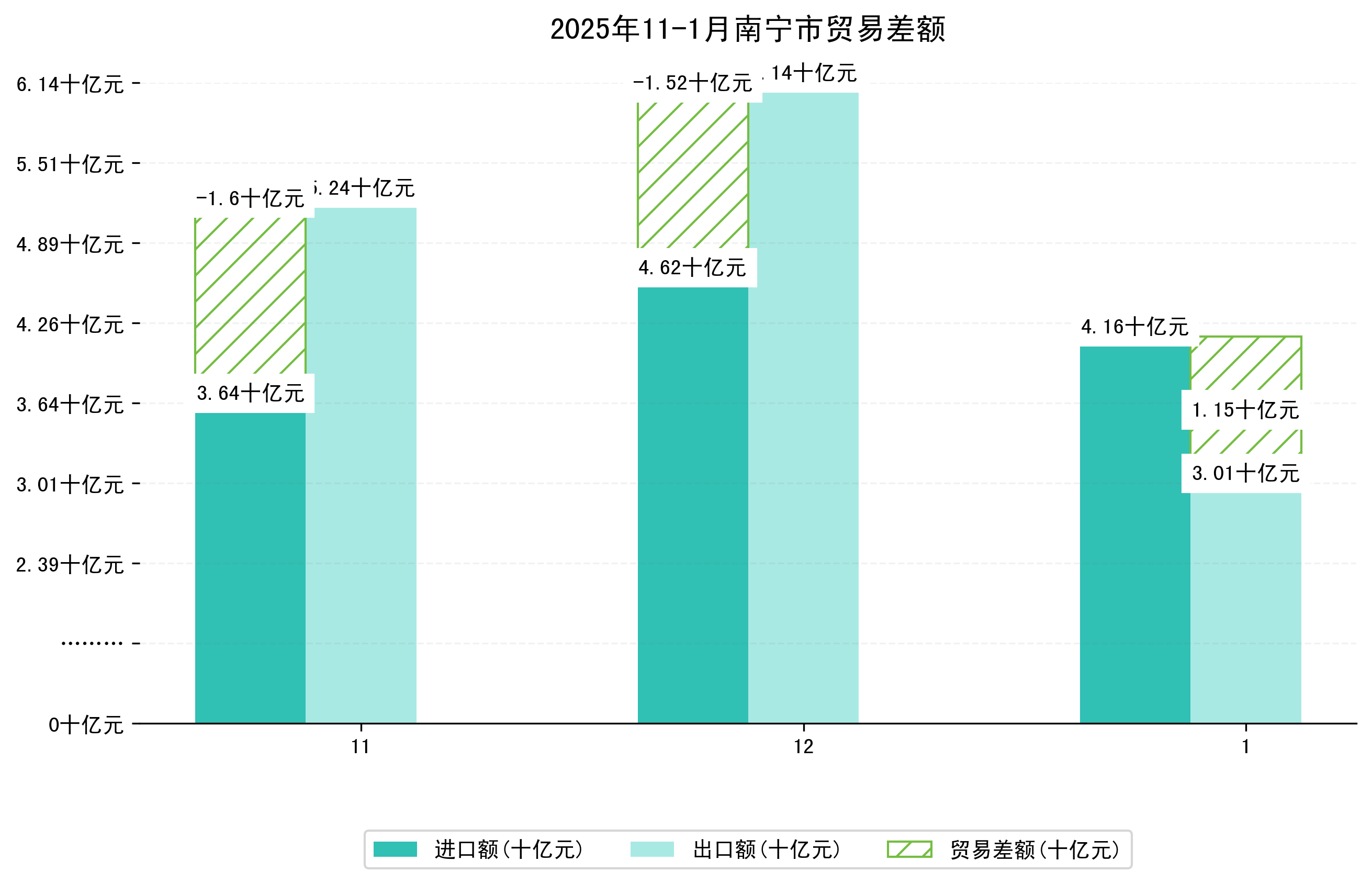 2025年1月南宁市进出口总额及进出口差额统计分析
