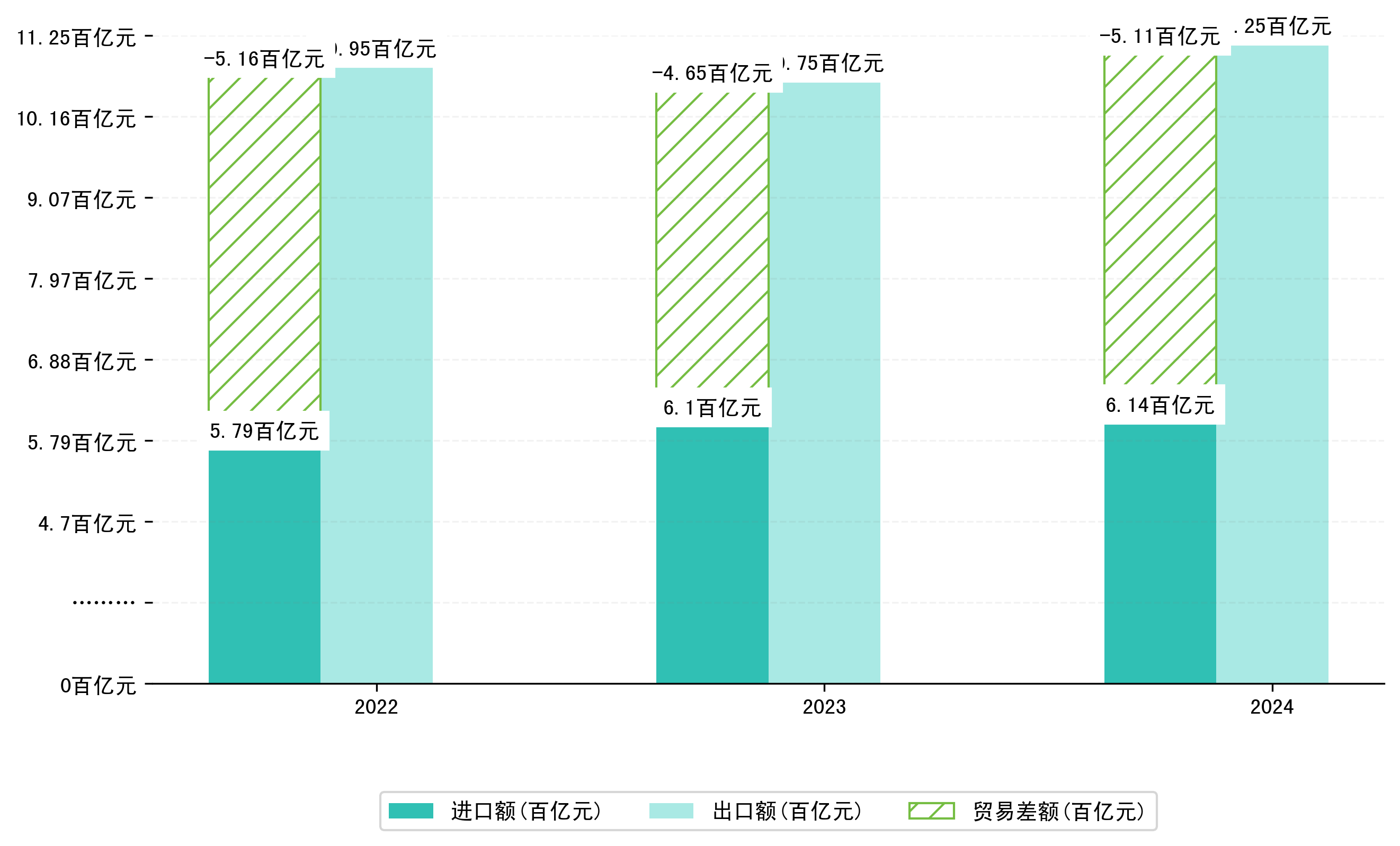 以人民币计,2024年1-6月南通市贸易差额为510,7006,2785万元(贸易顺差),相比上年同期增加了45,8190,5602万元,同比增加9.86%。