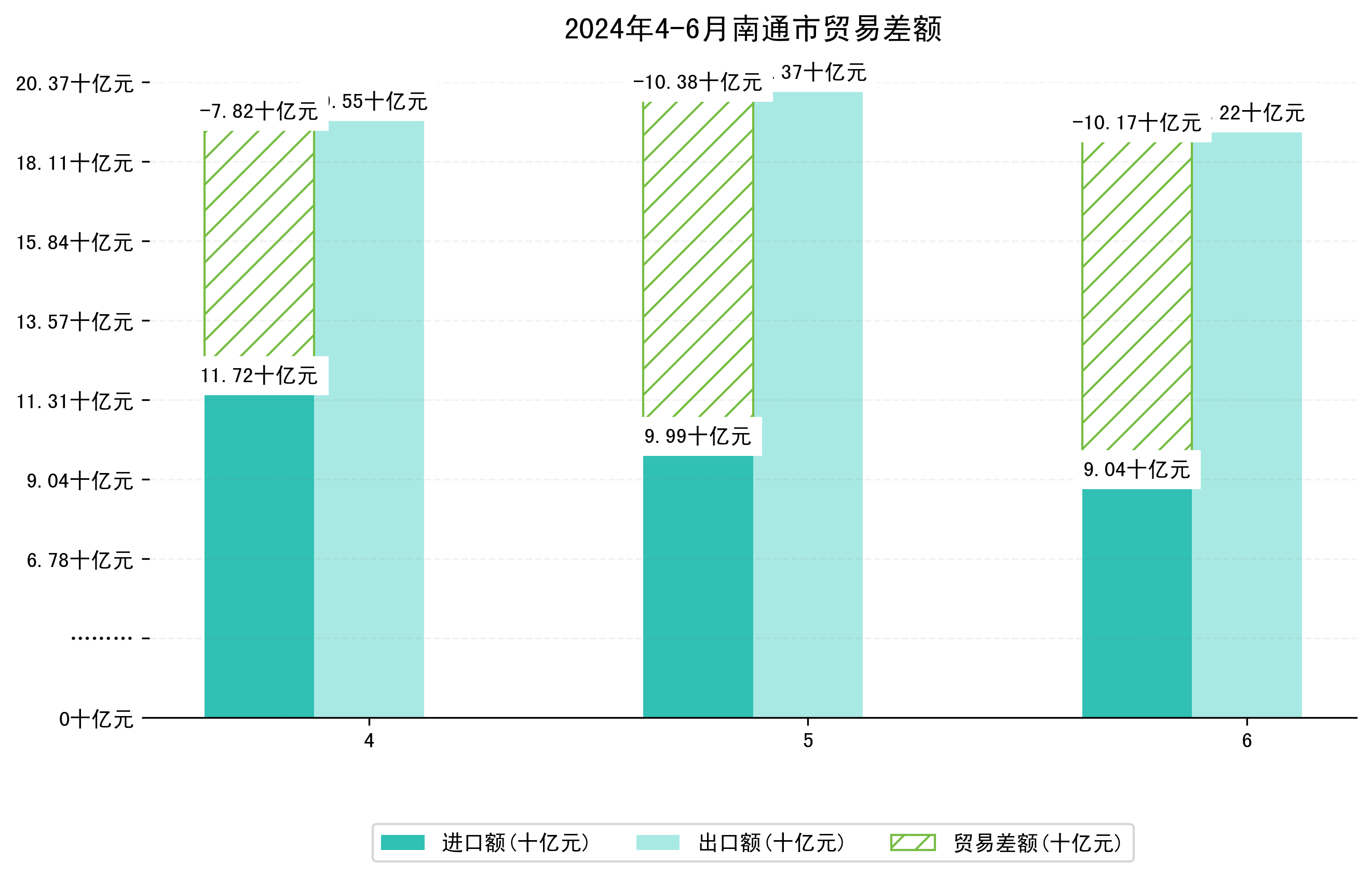 以美元计,2024年1-6月南通市贸易差额为71,8622,4701万美元(贸易顺差),相比上年同期增加了4,4384,5110万美元,同比增加6.58%。