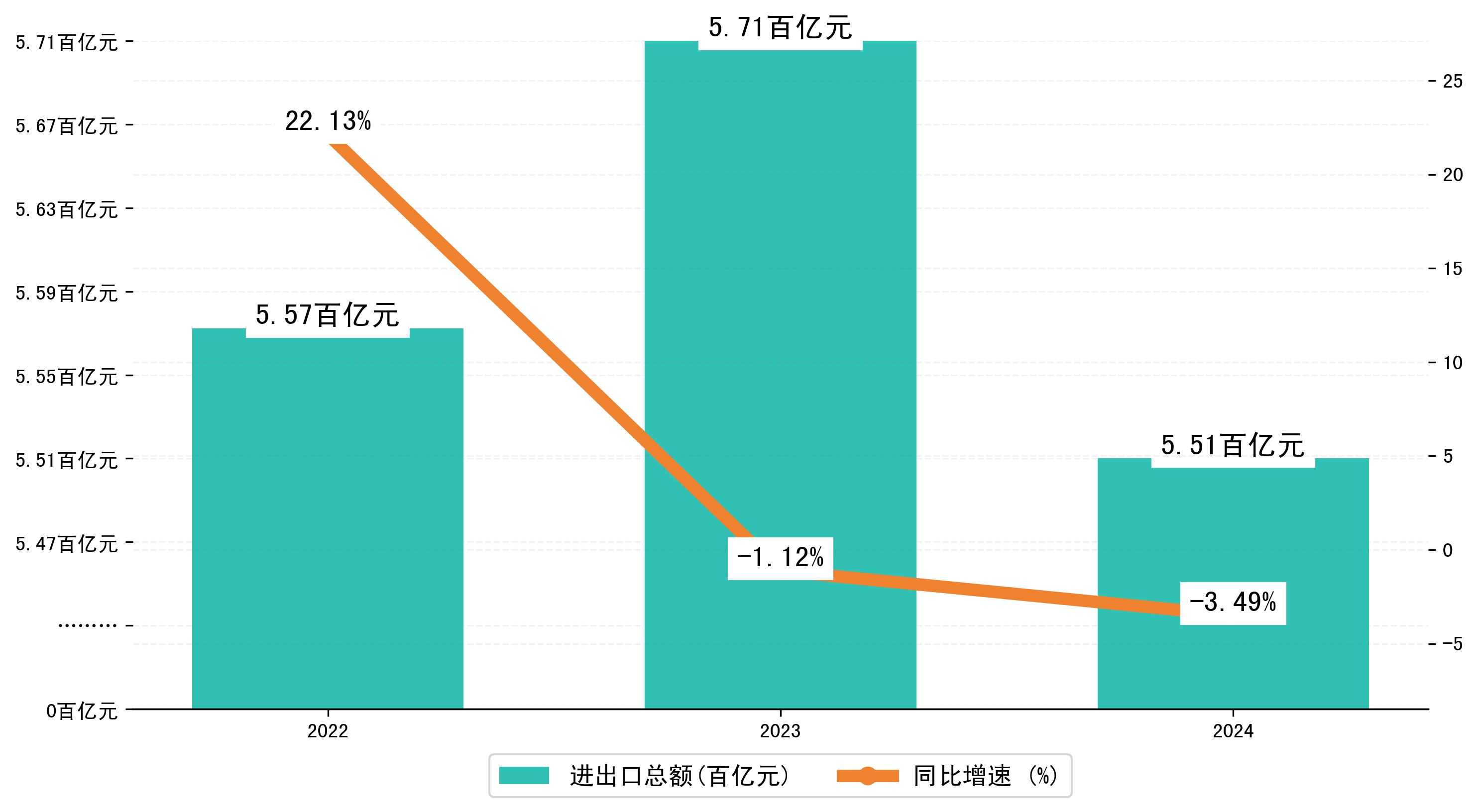 以人民币计,2024年2月南通市进出口总额为244,4954.4737万元,相比上月减少了61,6301.8476万元;相比上年同期减少了31,7431.9541万元,同比减少了-3.10%。