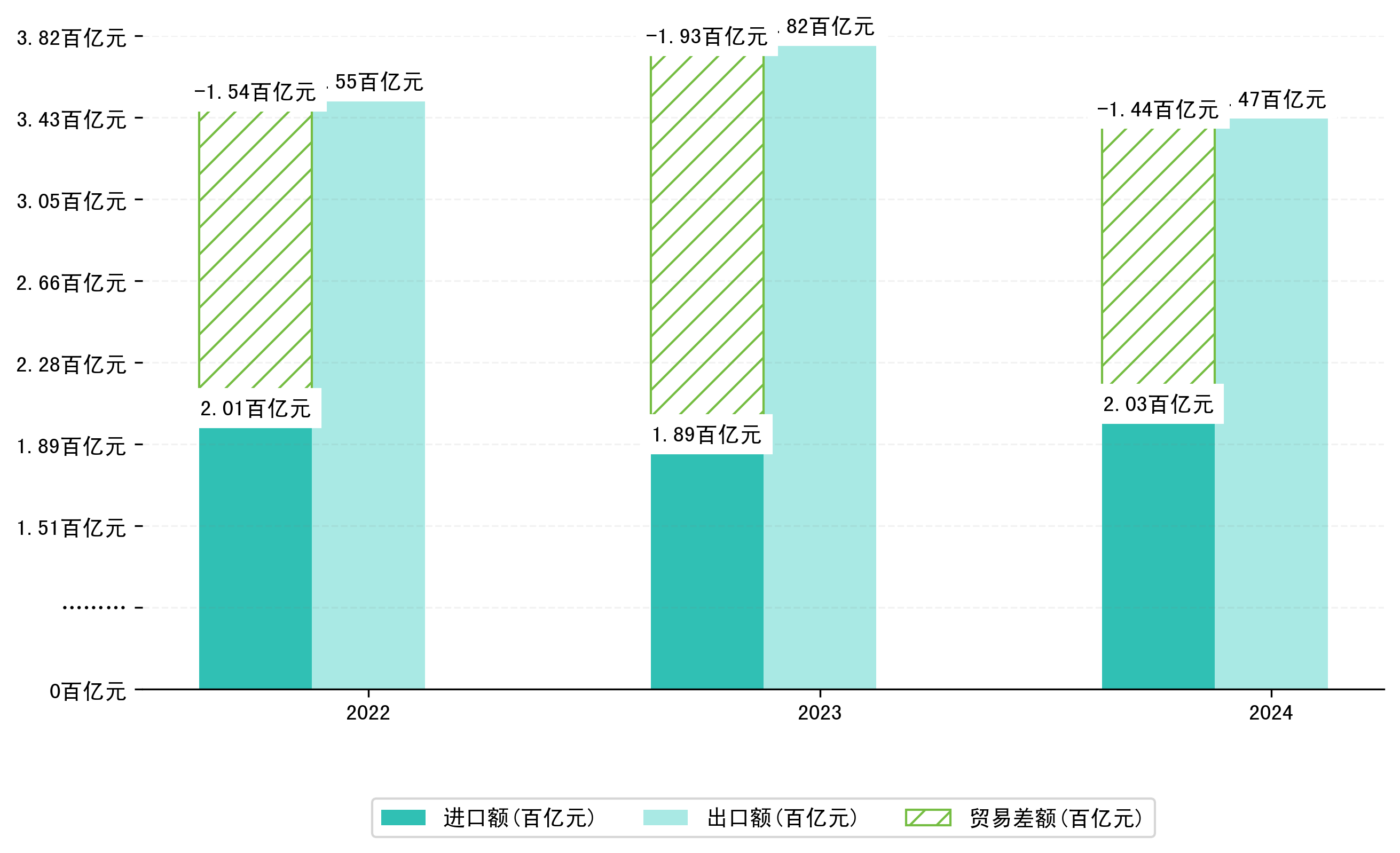 以美元计,2024年1-2月南通市贸易差额为20,2144,7834万美元(贸易顺差),相比上年同期减少了7,5638,9918万美元,同比减少-27.23%。