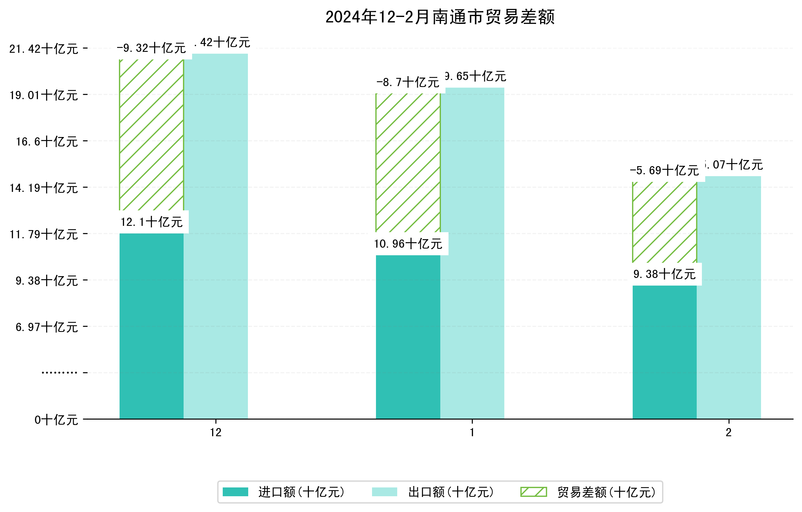 以人民币计,2024年2月南通市进口额为93,7855.7127万元,相比上月减少了15,7950.7811万元;相比上年同期增加了6,6164.8045万元,同比增加了8.00%。