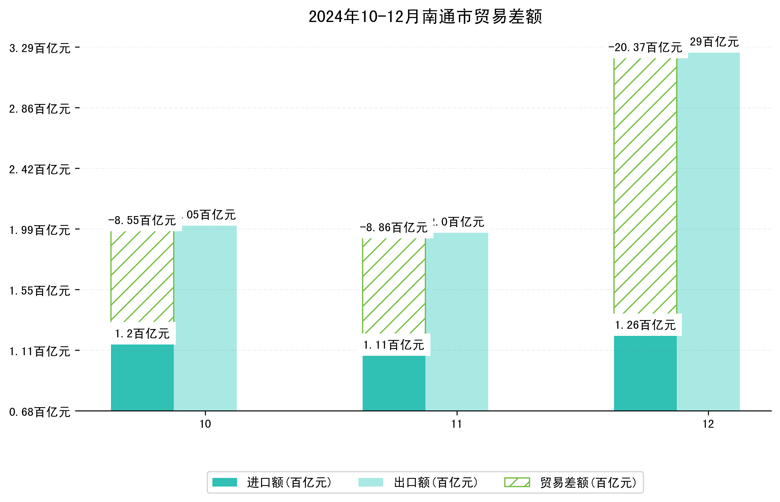 一、2024年12月南通市单月出口总额及进出口差额统计分析
