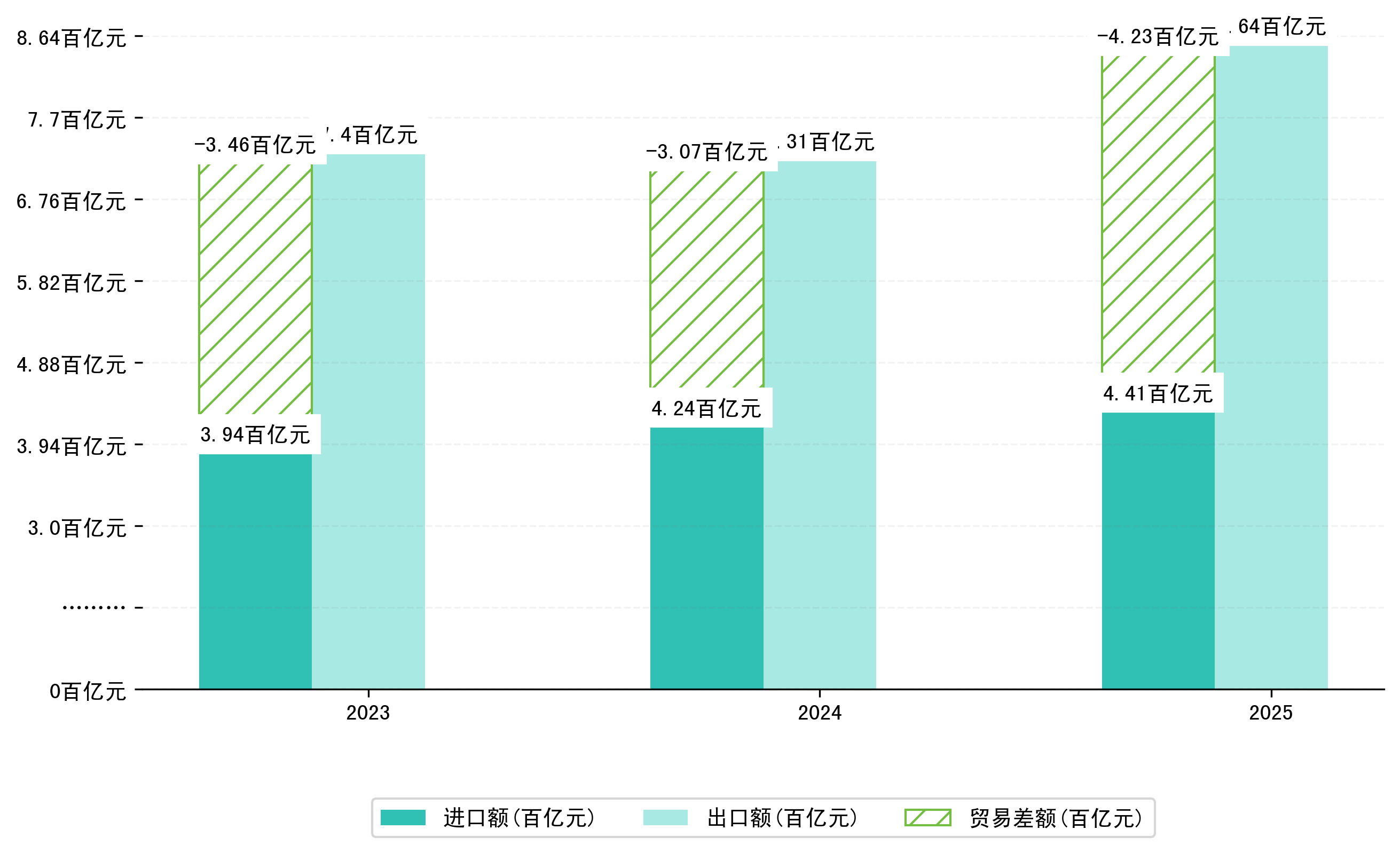 以人民币计,2025年4月南通市贸易差额为143,9748,7696万元(贸易顺差),相比上月增加了38,7827,3969万元,即5,4135,9651万美元;相比上年同期增加了65,7635,0463万元,同比增加84.08%。