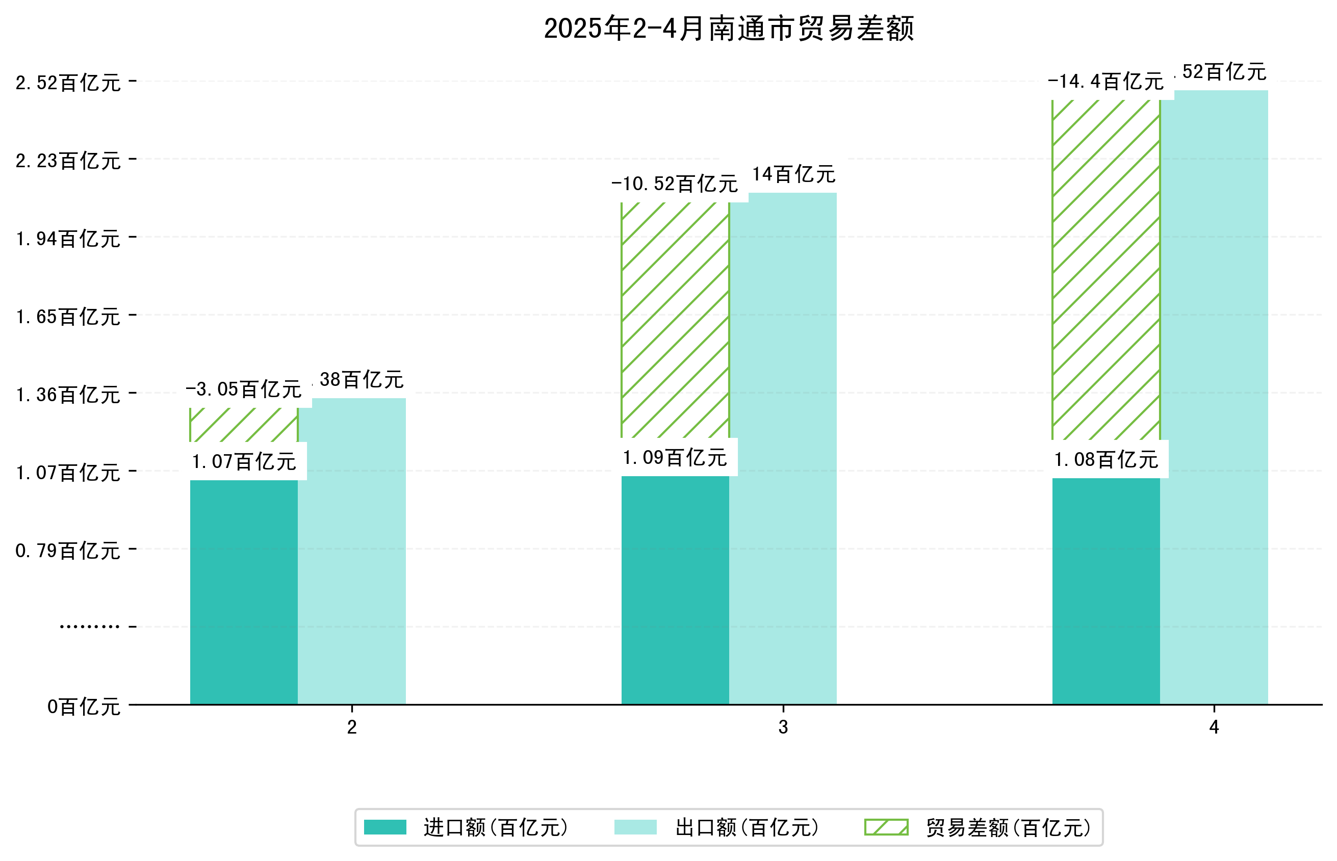 一、2025年4月南通市单月出口总额及进出口差额统计分析