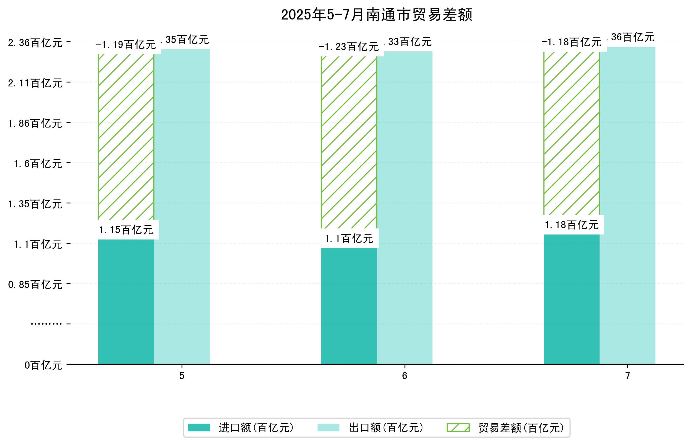 (图一:2025年5-7月南通市进出口总额)