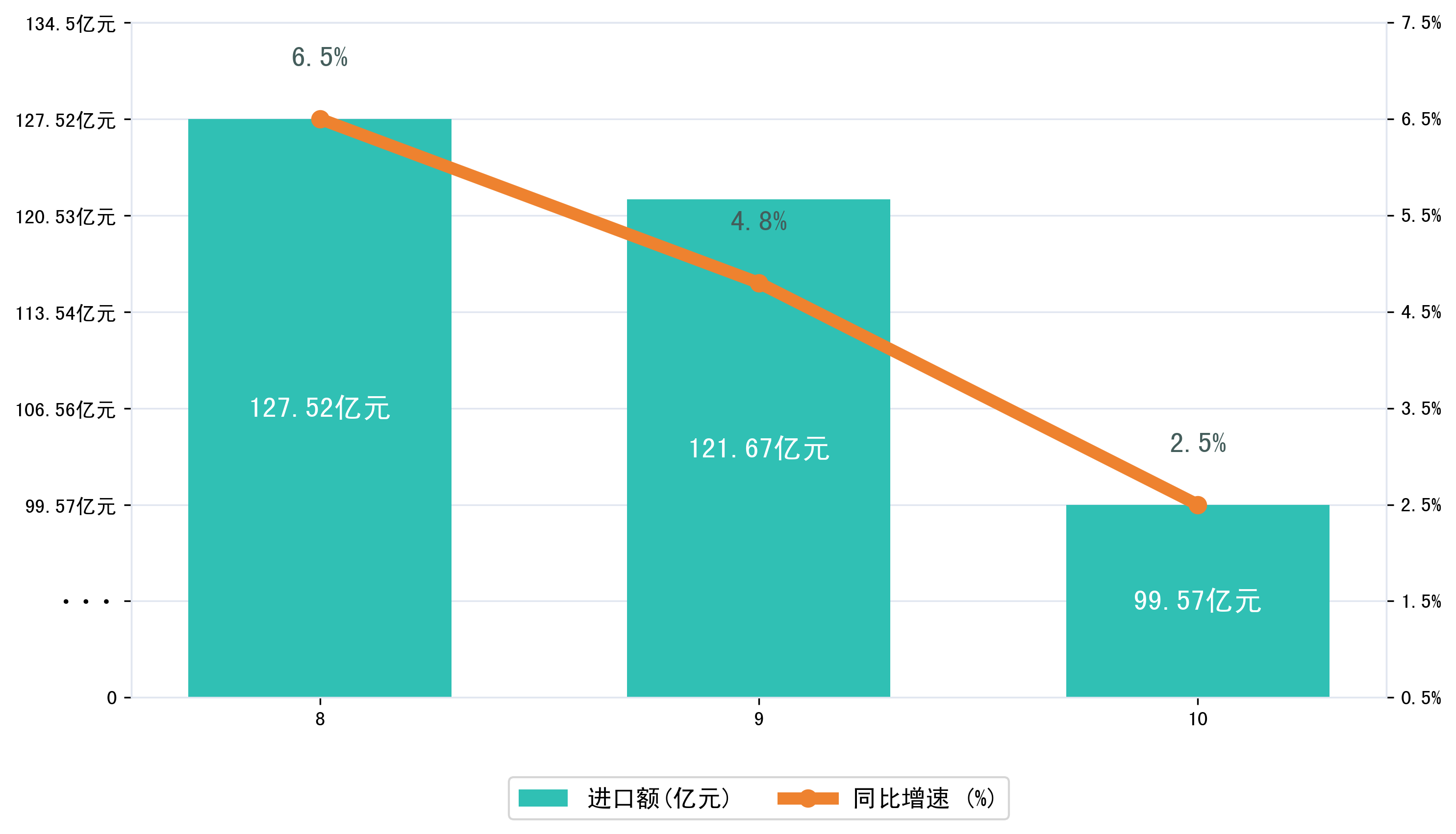 以人民币计,2025年10月南通市进口额为99,5695.2456万元,相比上月减少了22,1032.3361万元;相比上年同期减少了19,9824.155万元,同比增加了2.50%。