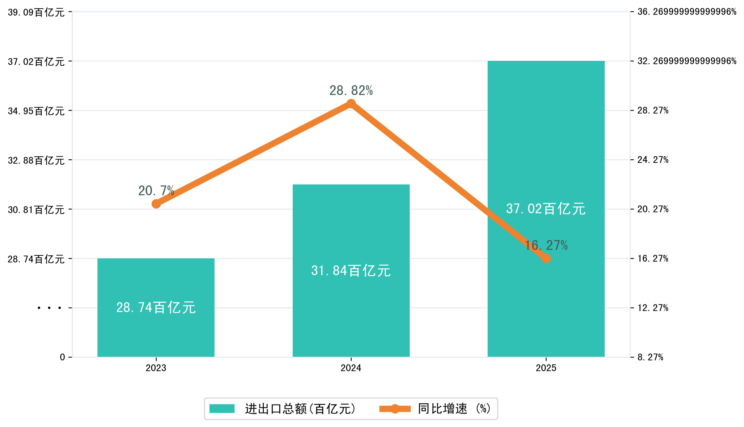 以人民币计,2025年1-10月南通市进出口总额为3702,1645.3666万元,相比上年同期增加了518,0029.0005万元,同比增加了16.70%。