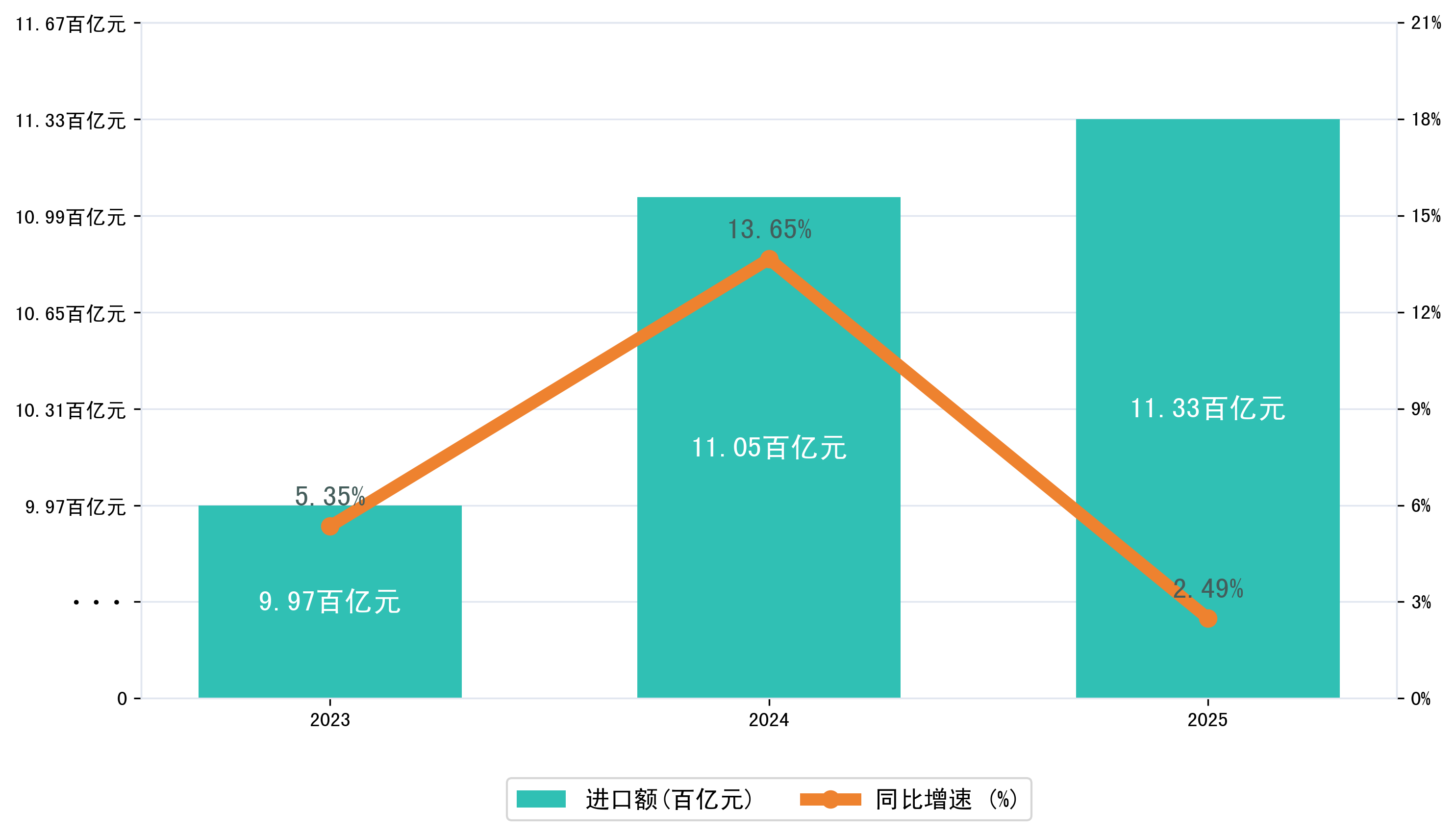 以人民币计,2025年1-10月南通市进口额为1132,7736.2013万元,相比上年同期增加了27,4900.6603万元,同比增加了2.50%。