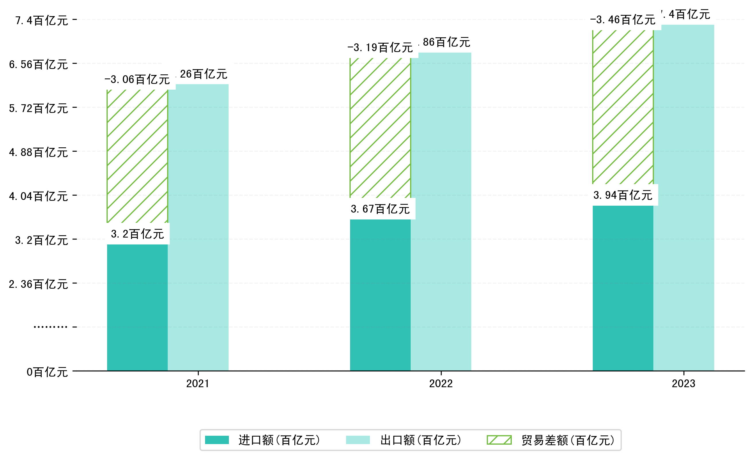 以人民币计,2023年1-4月南通市贸易差额为345,8539,9862万元(贸易顺差),相比上年同期增加了26,8778,6832万元,同比增加8.43%。