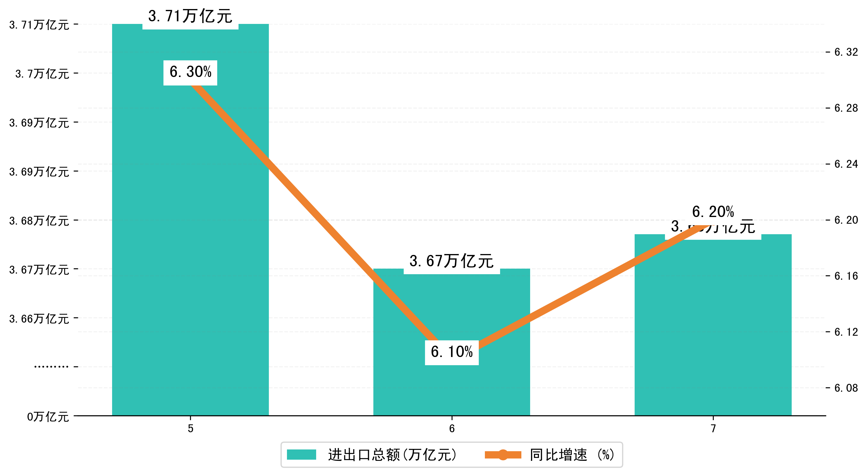 (图一:2024年5-7月全国进出口数据进出口总额)