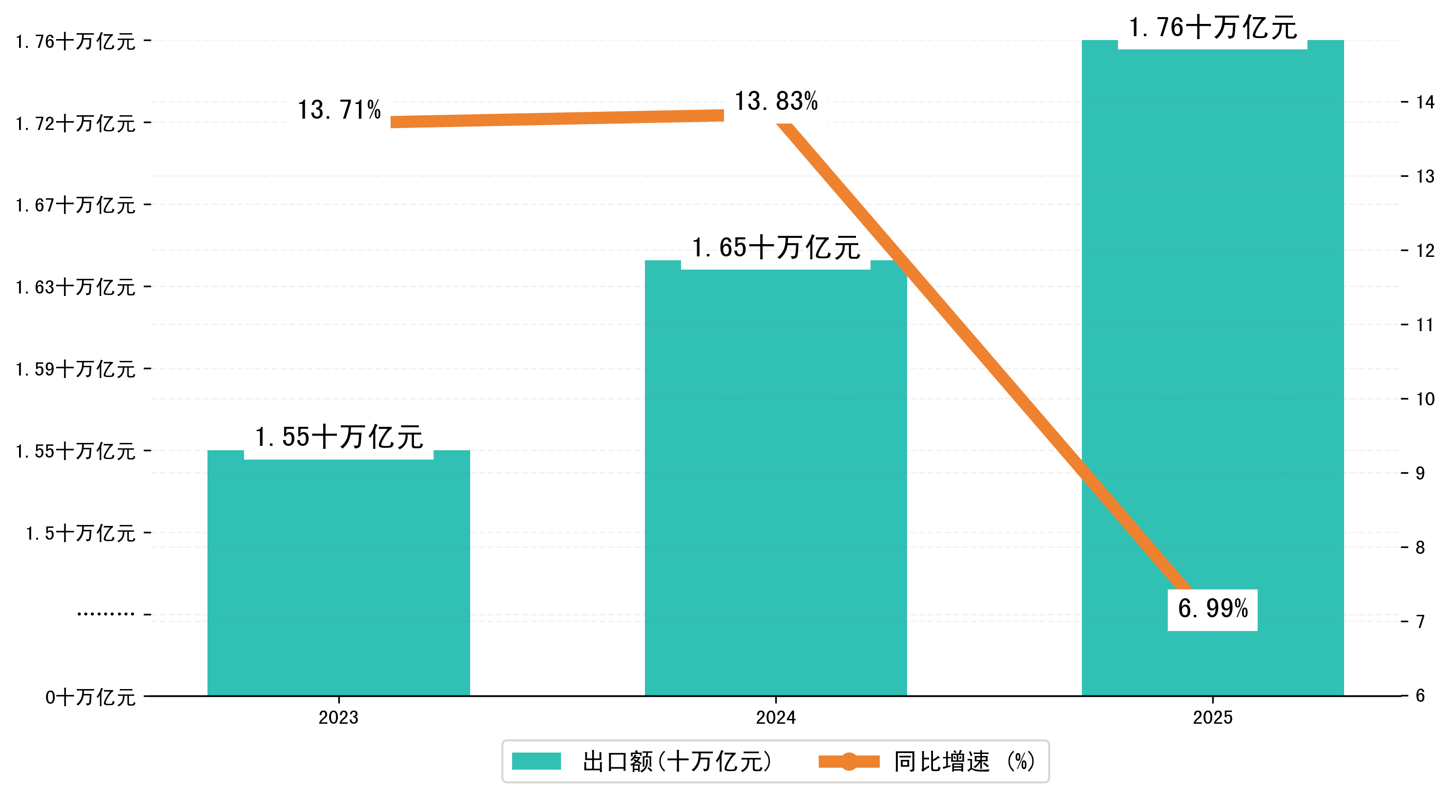 以人民币计,2025年1-8月全国进出口数据出口额为17,6056,0555.7824万元,相比上年同期增加了1,1503,5798.2798万元,同比增加了6.90%。