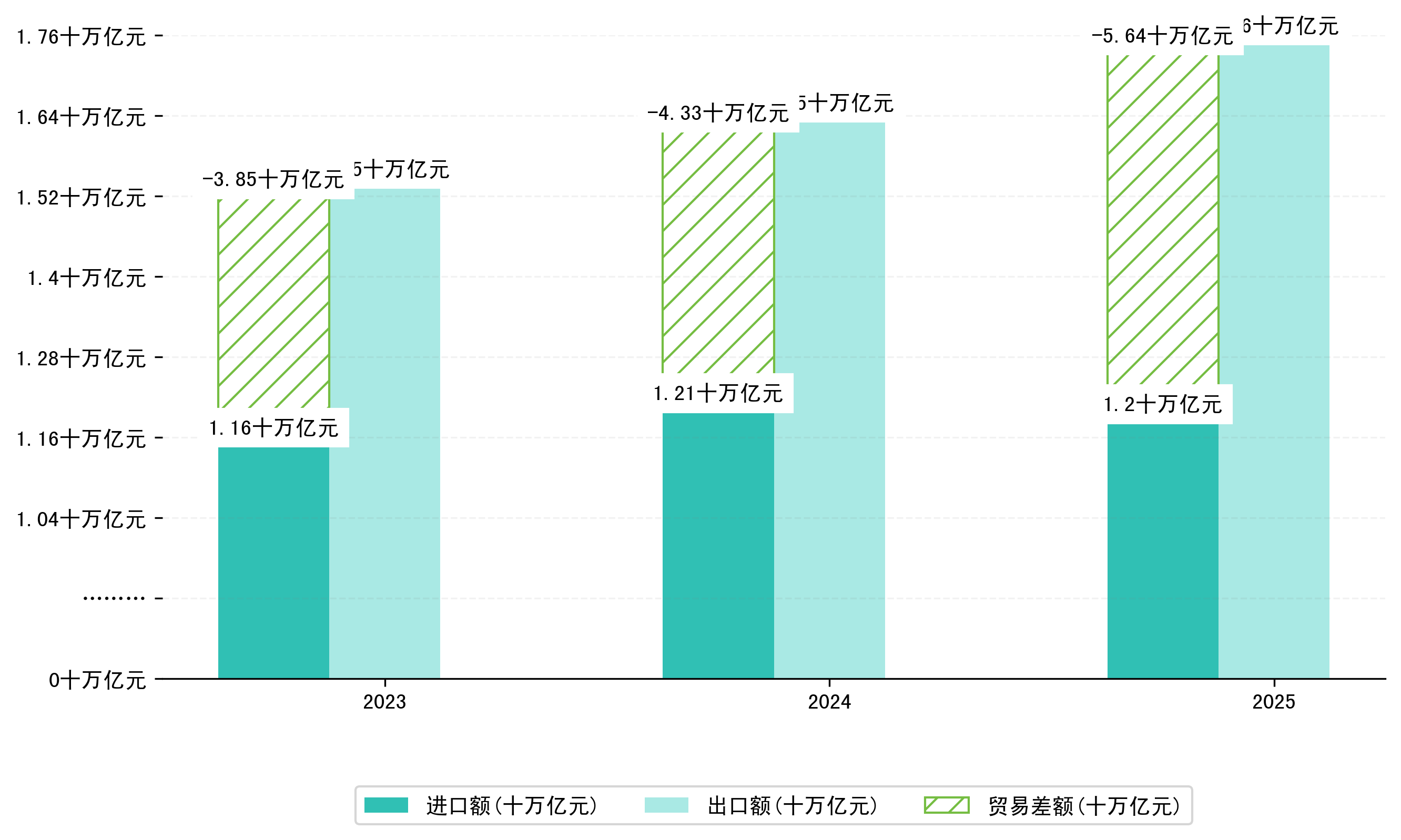 以人民币计,2025年1-8月全国进出口数据贸易差额为5,6416,4443,9599万元(贸易顺差),相比上年同期增加了1,3149,6390,2196万元,同比增加30.39%。