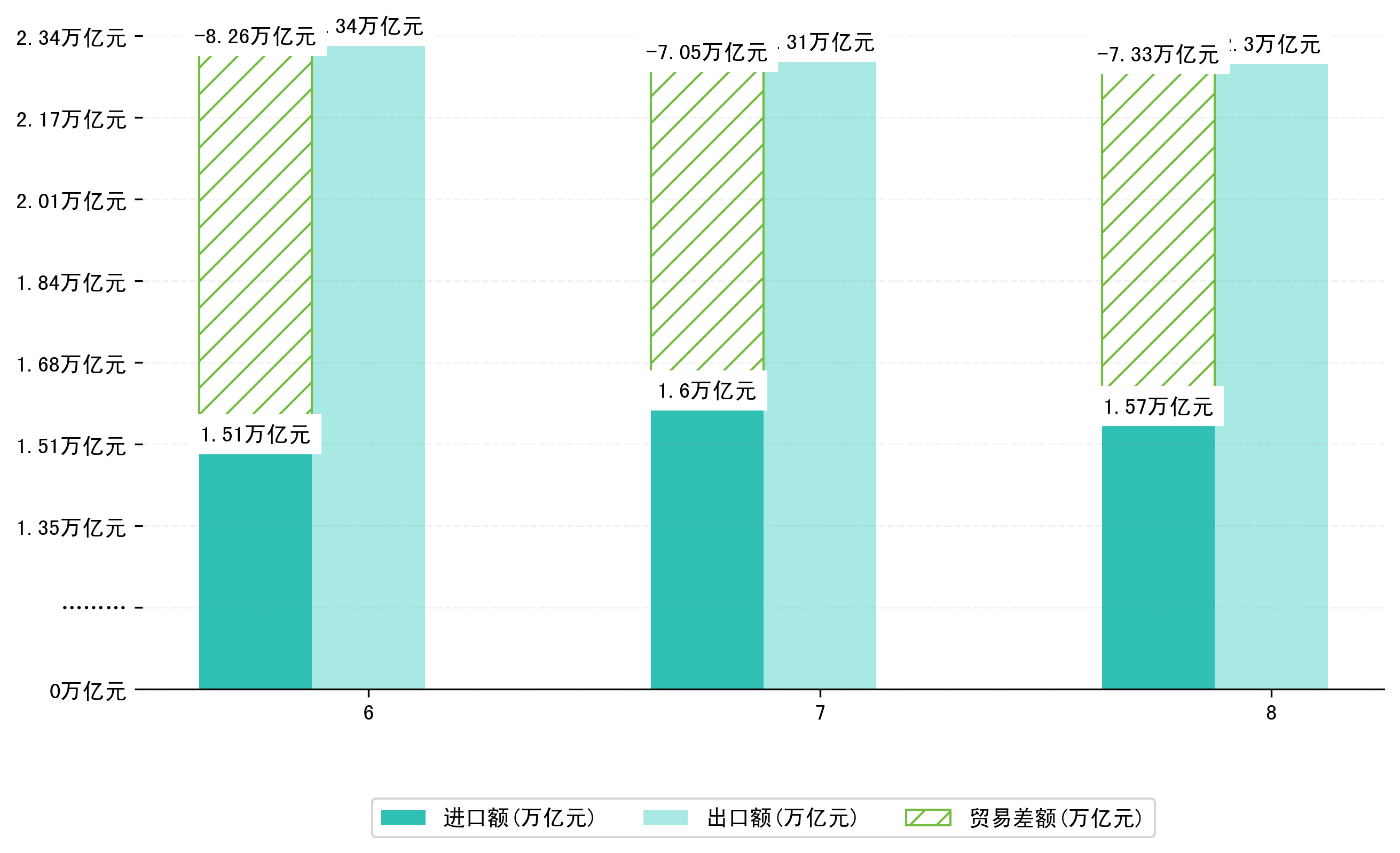 (图一:2025年6-8月全国进出口数据进出口总额)