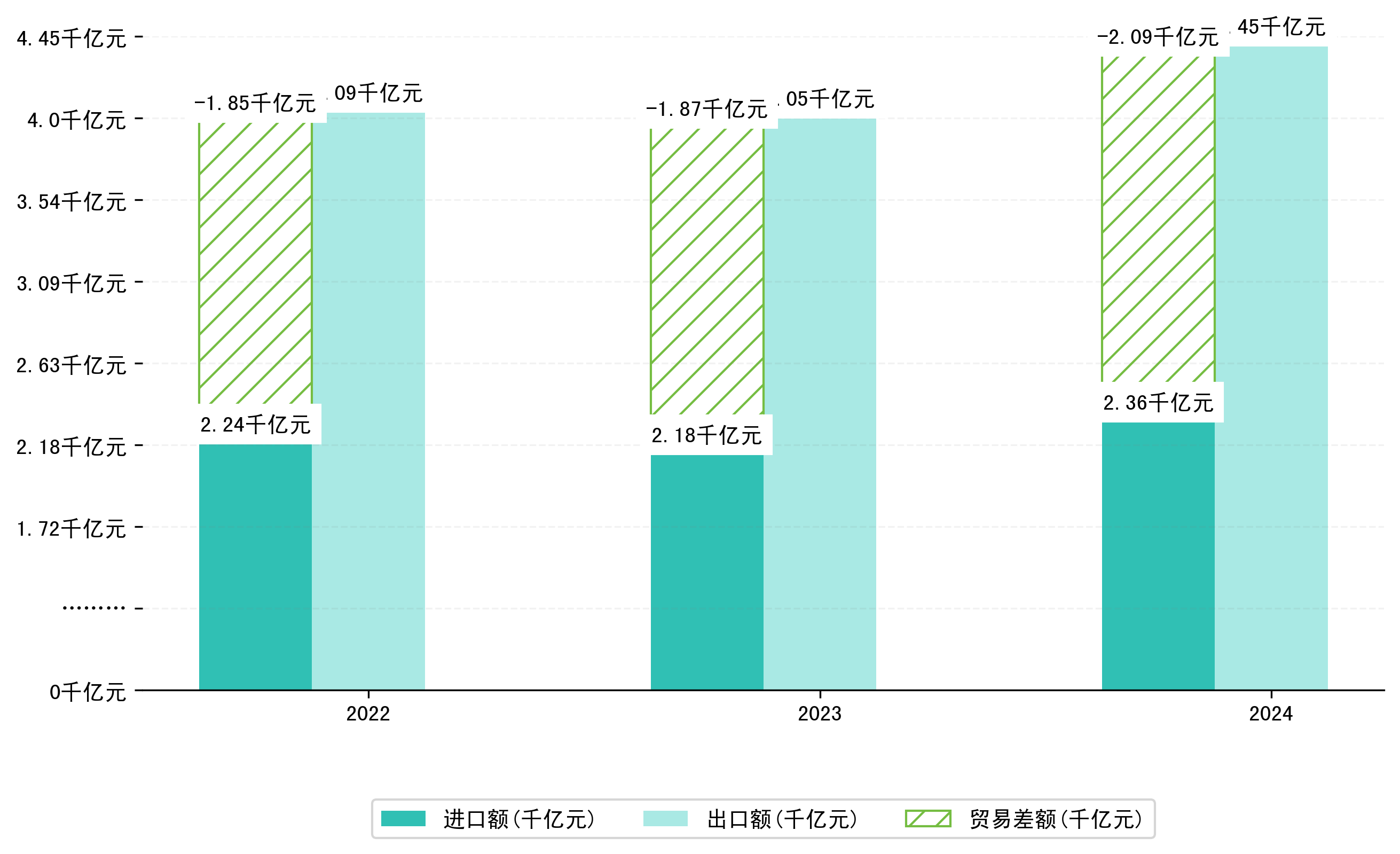 以人民币计,2024年1-6月宁波市贸易差额为2094,8584,0842万元(贸易顺差),相比上年同期增加了220,9732,0129万元,同比增加11.79%。