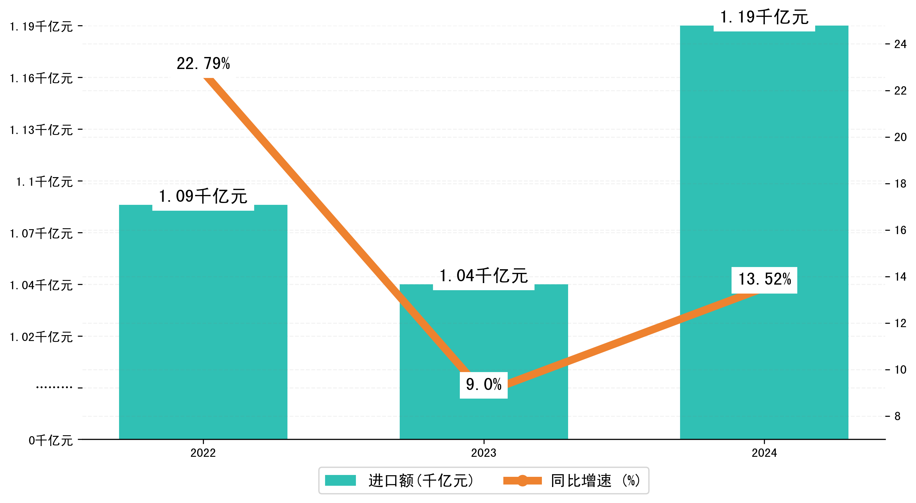以人民币计,2024年1-3月宁波市进口额为1185,9527.6199万元,相比上年同期增加了141,2019.1685万元,同比增加了12.90%。