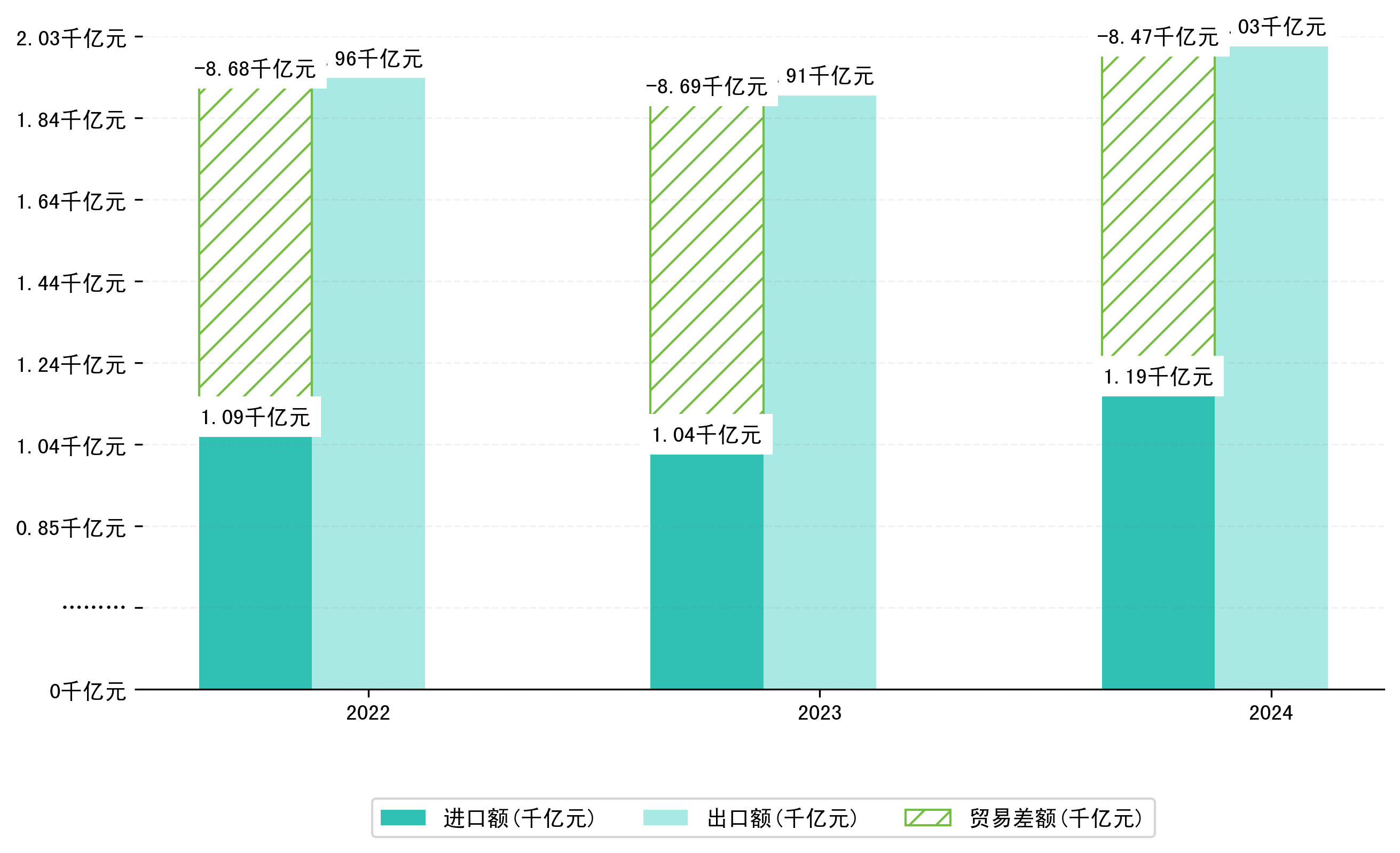 以人民币计,2024年1-3月宁波市贸易差额为847,0138,5249万元(贸易顺差),相比上年同期减少了22,0886,9491万元,同比减少-2.54%。